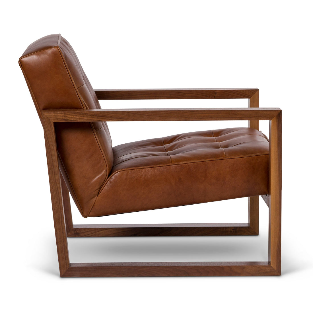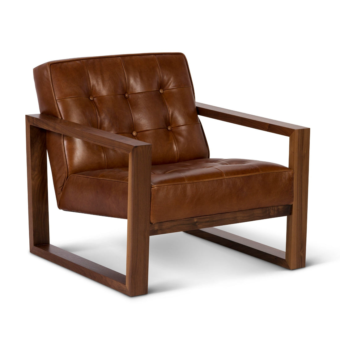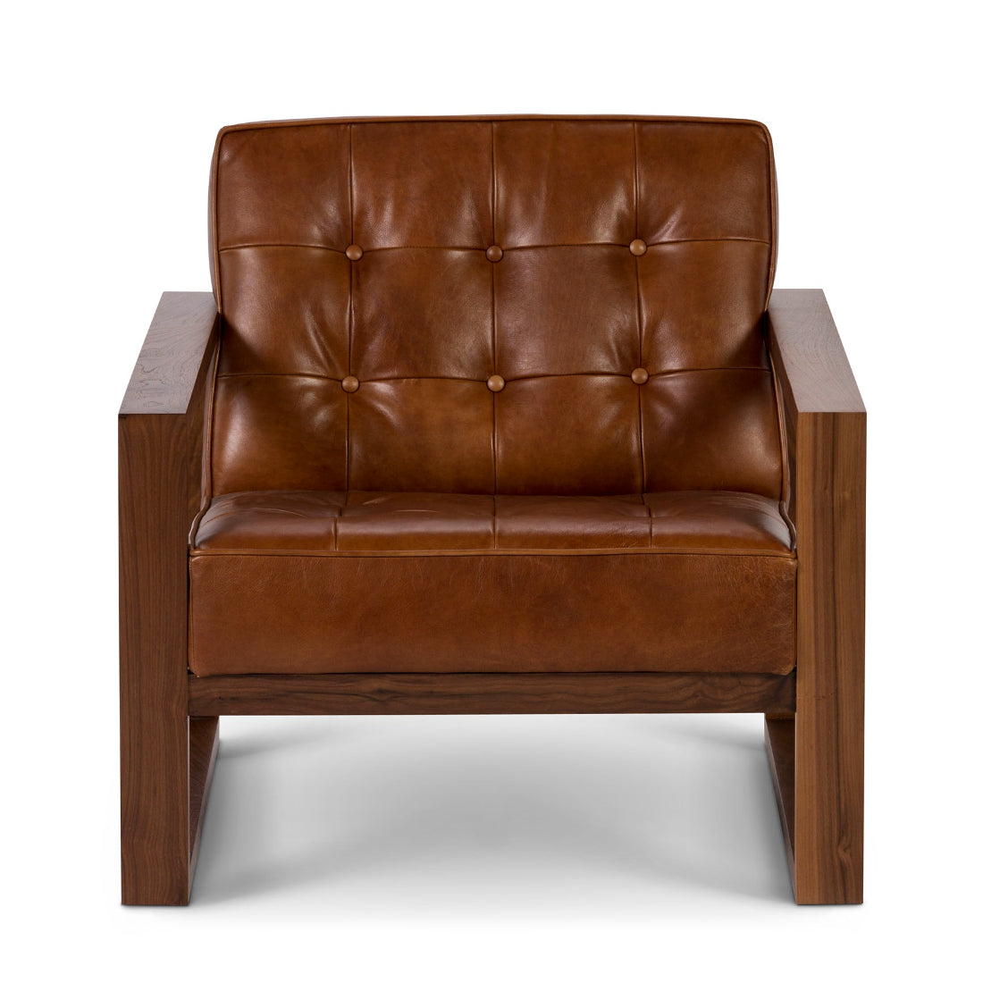 Experience ultimate comfort with the Harrison full aniline top grain leather accent chair. Its exposed wooden arms provide a perfect balance between style and functionality, making it perfect for both intimate conversations and quiet relaxation. The elegant button-tufting and sturdy construction elevate the chair to a new level of comfort and sophistication. Crafted from high-quality materials such as hardwood, hardwood plywood, and kiln-dried hardwood, this chair is built to last a lifetime.