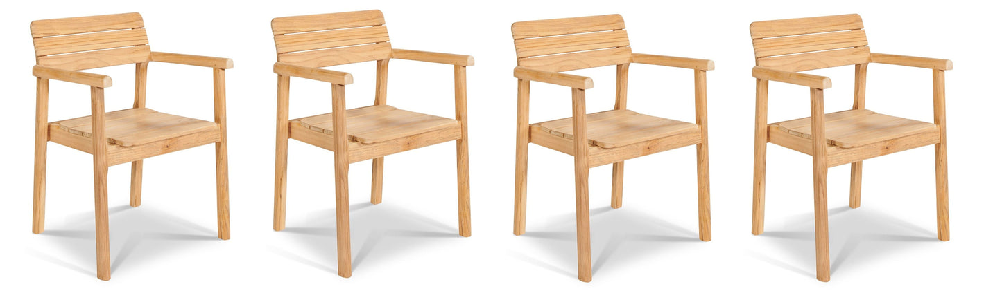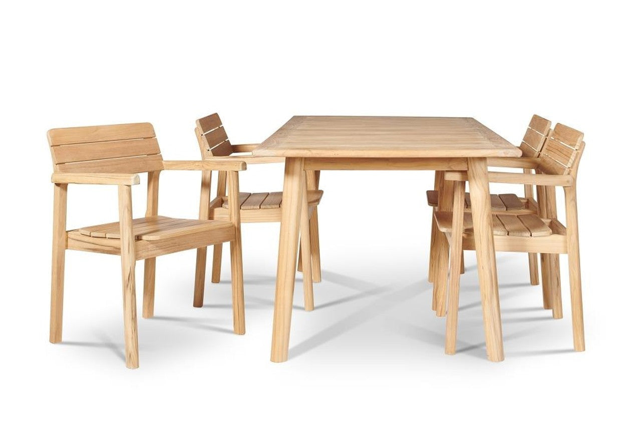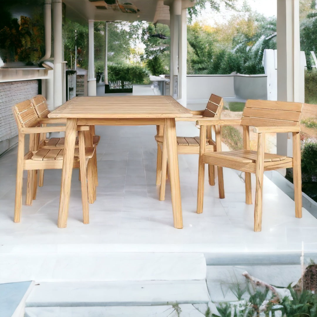 Modurn 5-Piece Rectangular Teak Outdoor Dining Set with Stacking Armchairs Features: