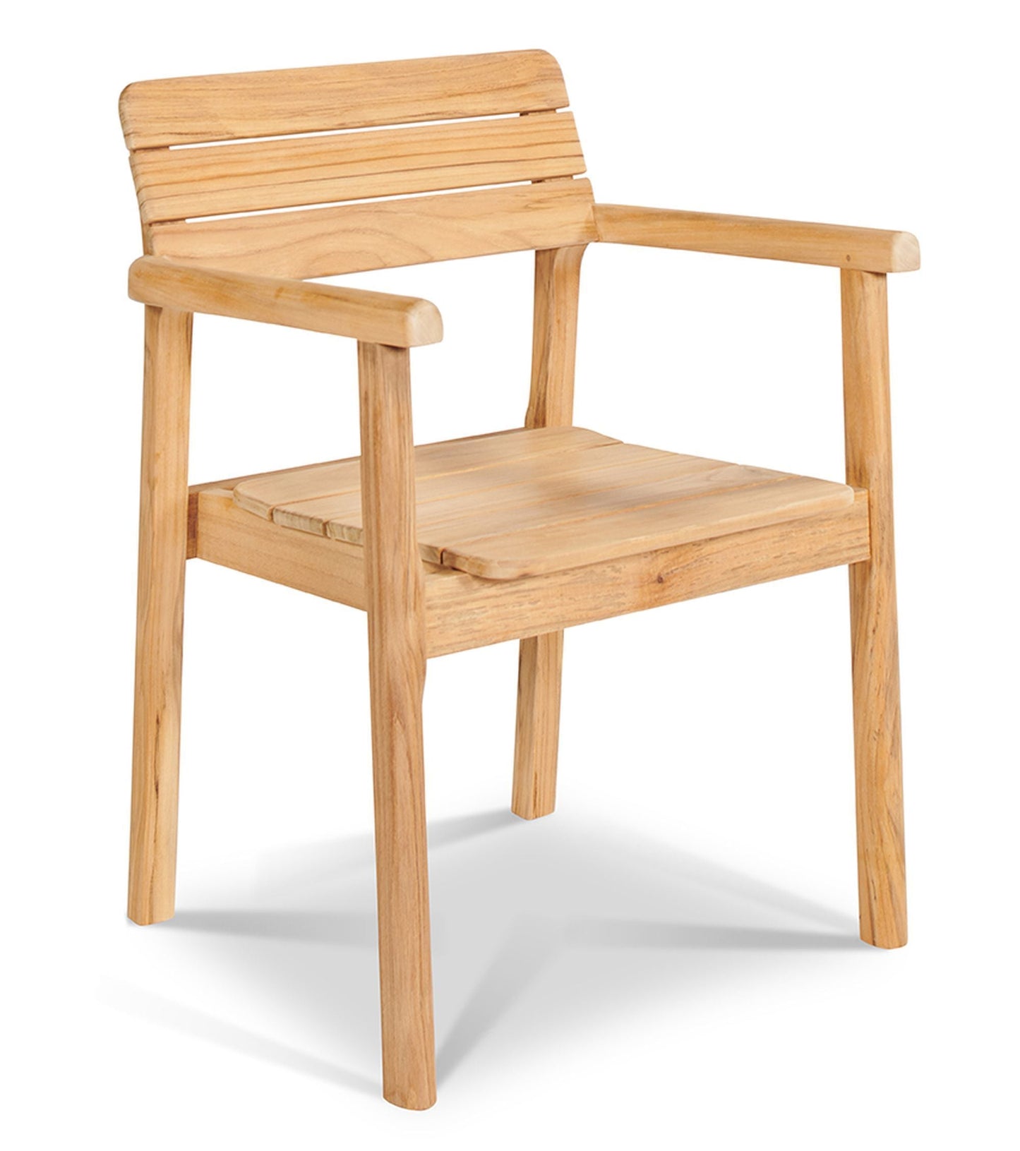 The trendiest new design in outdoor dining, featuring wide premium teak slats and sleek, rounded edges. The Moderne Armchair exudes a sophisticated, minimalist style while providing ultimate comfort. This table comfortably seats 4-6. A flawless complement to modern urban outdoor spaces. The set includes one Modurn Rectangular Dining Table and four. Modurn Arm Chairs Modurn Dining Table: Width 35.5" Length 71" Height 29.5" Modurn Armchair: Seat Width 19" Seat Depth 15.5" Seat Height 17.25" Arm Height 25" Table.