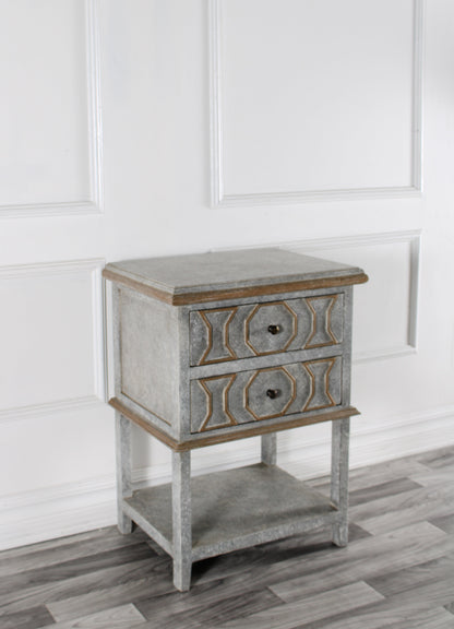 Montaigne Night Stand Elegance in Distressed Grey Wood Features: