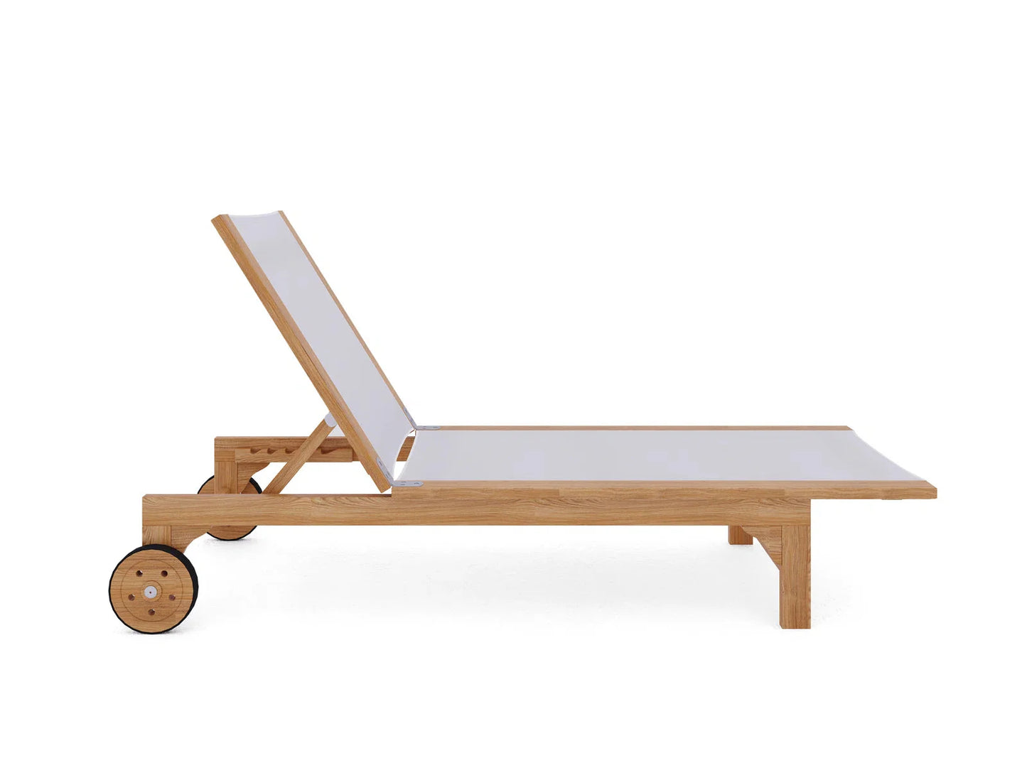 Montauk Teak Outdoor Reclining Sunlounger with Wheels Features: