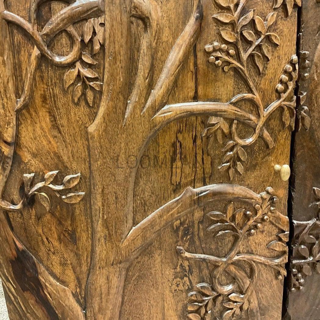 Crafted using solid full-length timber, this cabinet is free from laminates, scarf joints, or veneers, ensuring its durability and elevated status as a future family heirloom. With fixed shelves behind three intricately carved doors, this cabinet offers ample storage space for all.