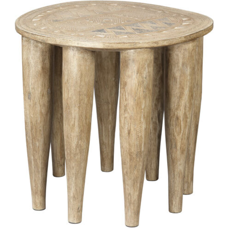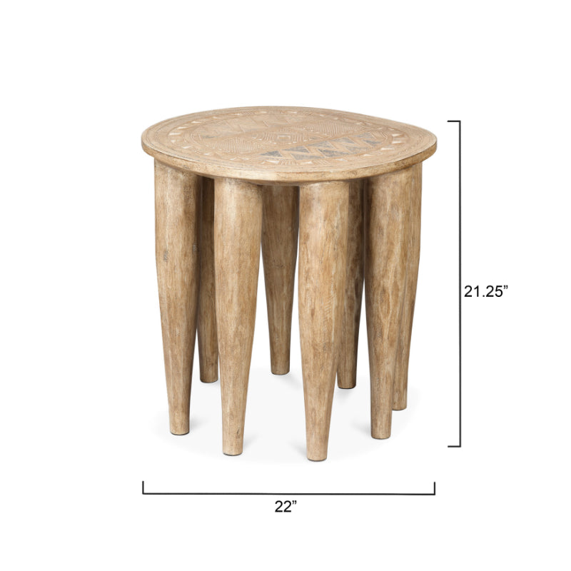 Handcrafted by skilled artisans of the Naga region in India, these stools embody the rich tradition and distinctive beauty of their cultural design. Made from sustainably harvested mango wood, each stool features nine tapered legs and a seat adorned with intricate etchings inspired by classic Naga carvings. As unique works of art, no two pieces are alike, making them timeless accents that bring authenticity and artistry to any space.