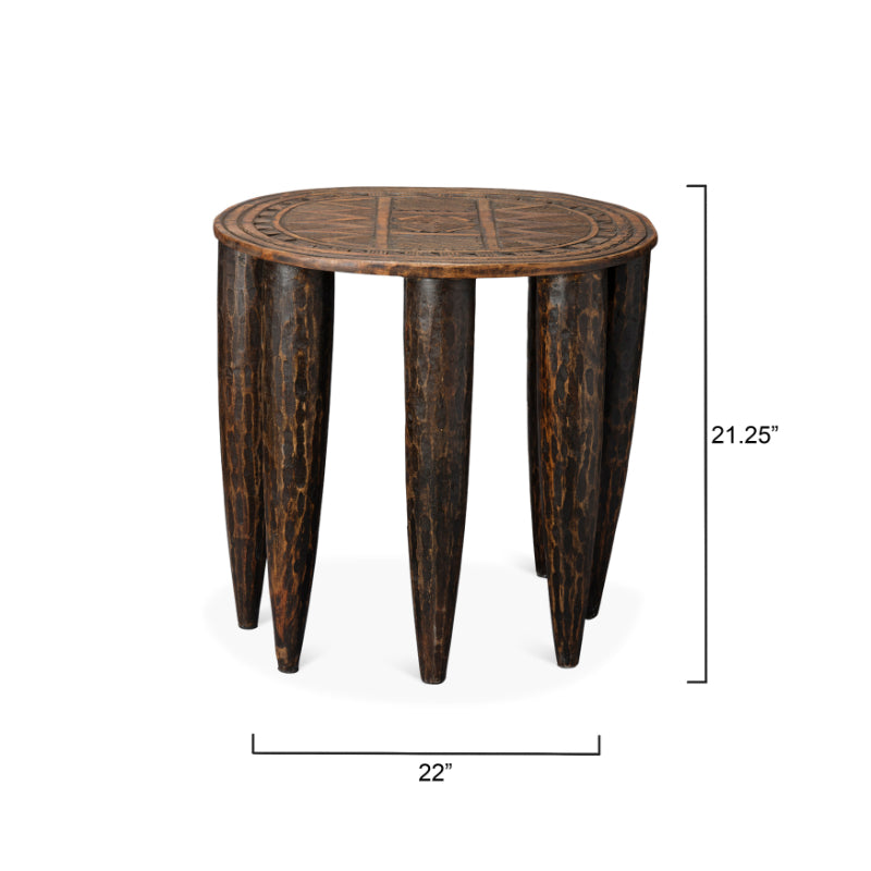 Handcrafted by skilled artisans of the Naga region in India, these stools embody the rich tradition and distinctive beauty of their cultural design. Made from sustainably harvested mango wood, each stool features nine tapered legs and a seat adorned with intricate etchings inspired by classic Naga carvings. As unique works of art, no two pieces are alike, making them timeless accents that bring authenticity and artistry to any space.