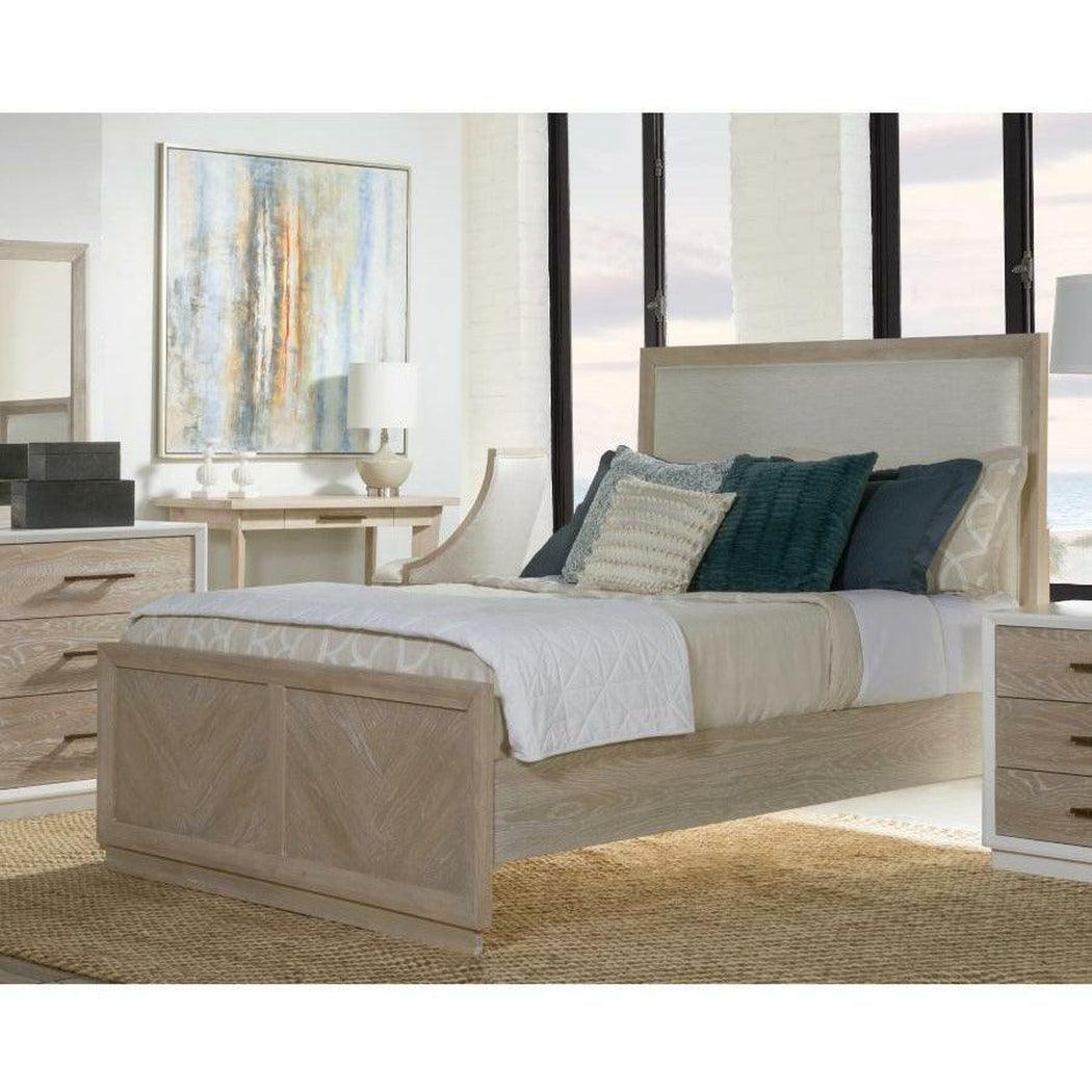 Representing the essence of modern living, the Panama Jack Boca Grande collection embodies a blend of sophistication and laid-back charm in its king-queen panel upholstered bed. The collection features clean lines, prominent edges, a high gloss finish, and wire-brushed oak veneers, all of which capture the essence of contemporary style. Constructed with durability, style, and affordability in mind, each piece in this collection is designed to meet the needs and desires of today's consumers. Boca Grande has a unique character that stays true to the relaxed nature of the brand, making it the perfect representation of a casual yet modern lifestyle.
