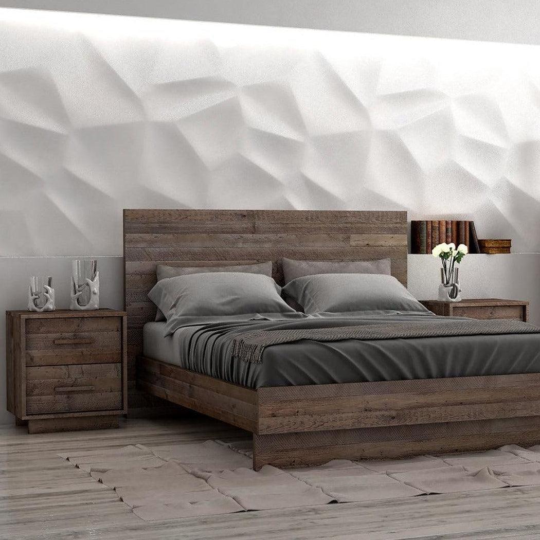 Take your bedroom to new heights with our Natural Brown Reclaimed Solid Wood Frame Nevada Nightstand! The rustic driftwood finish highlights the wood's raw beauty, while unique imperfections add character and a touch of adventure. Its modern architectural design meets farmhouse simplicity, making every piece a rustic work of art. The beautiful driftwood finish showcases the natural charm of the wood, complete with saw marks, wood grains, nail holes, and uneven texture and color.