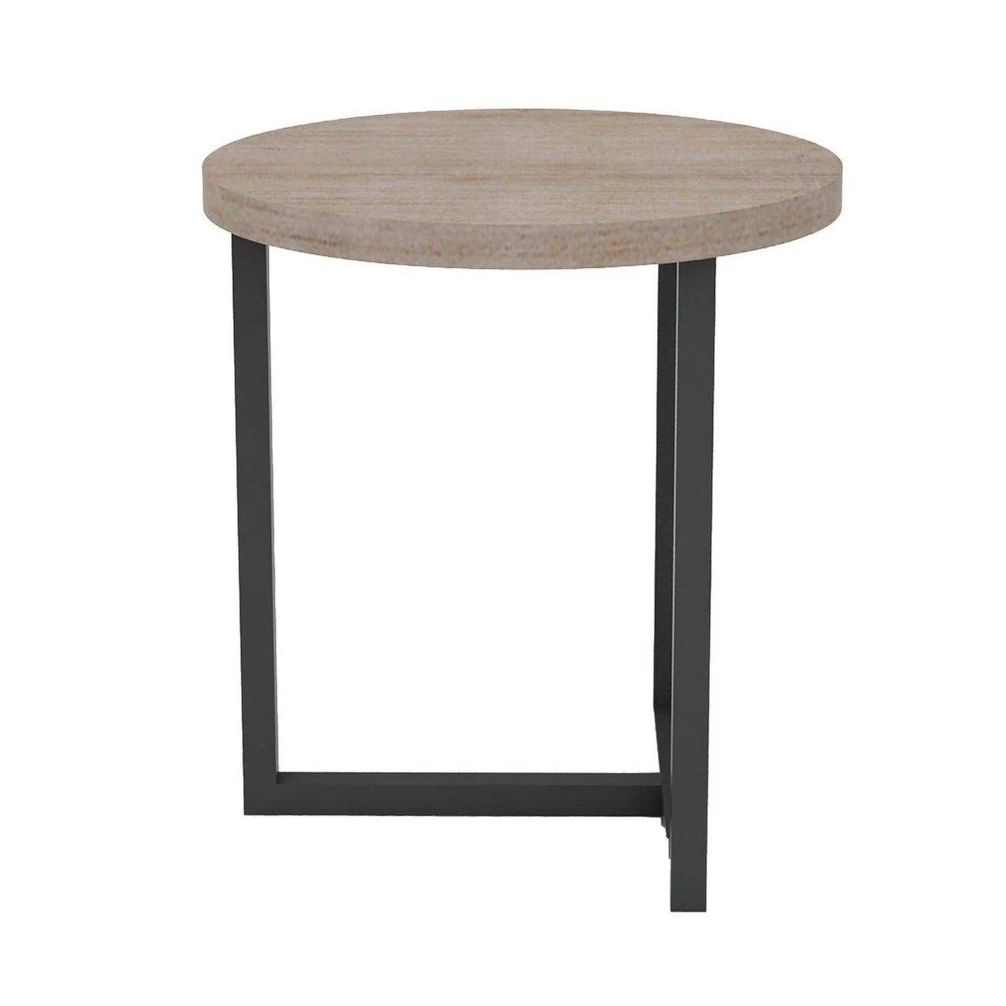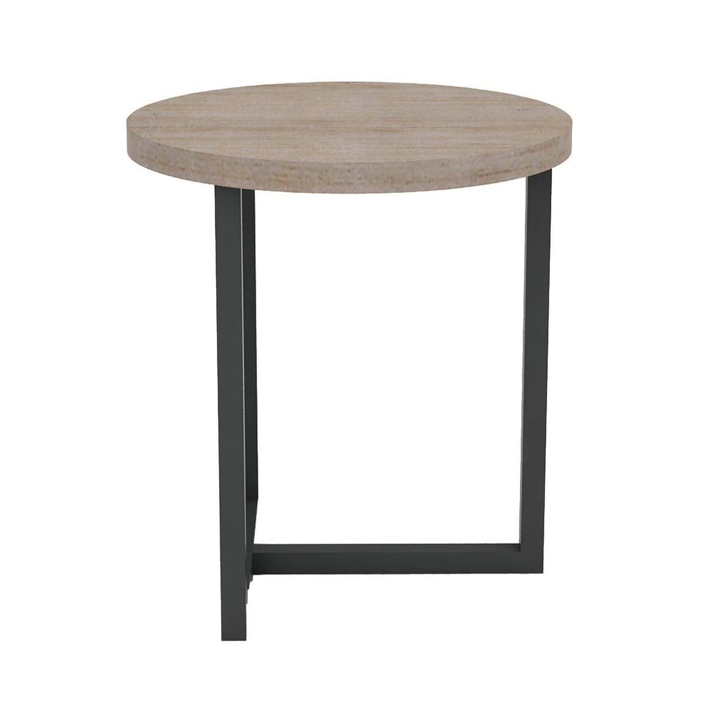 Natural Brown Round Side Table Wood Top With Metal Base Features: