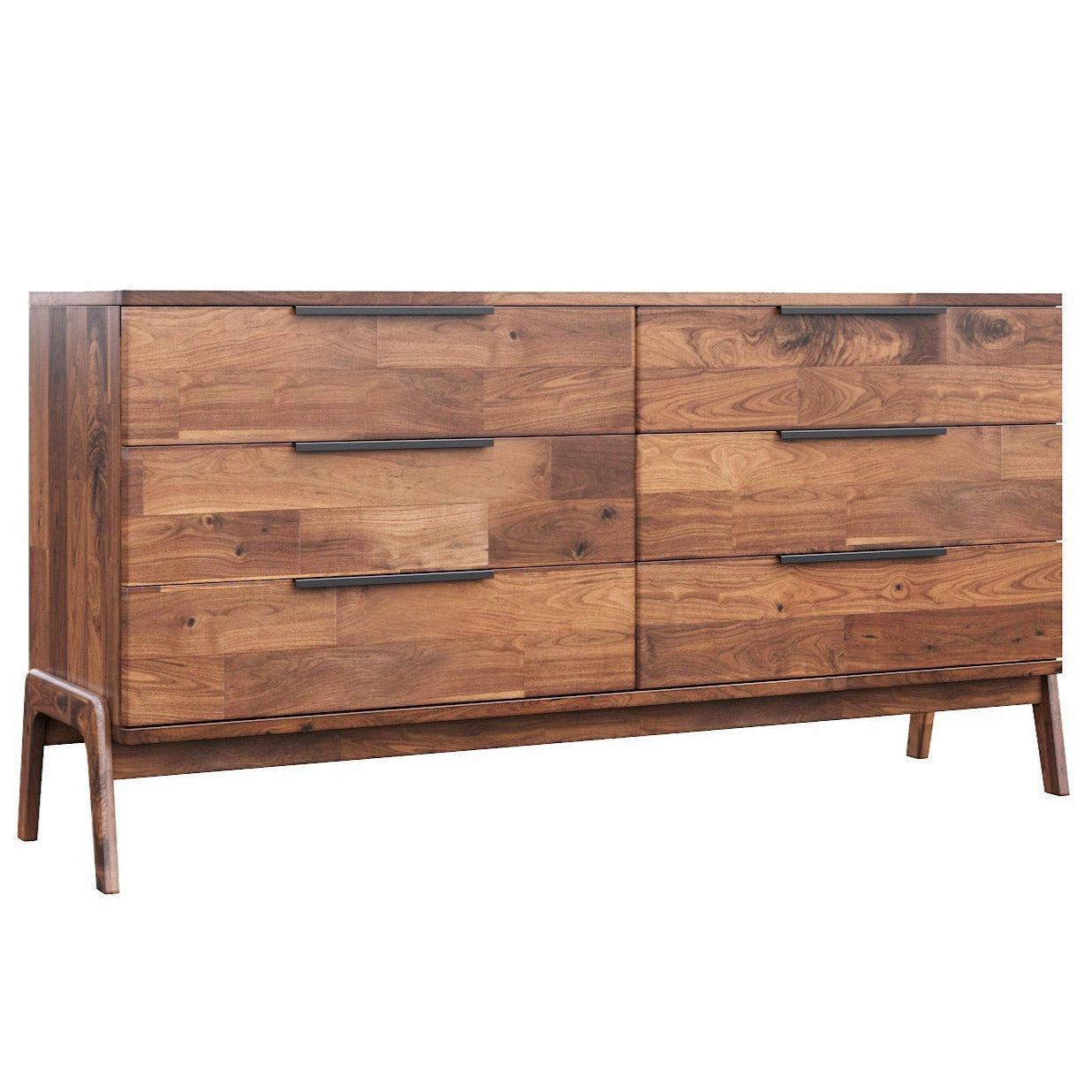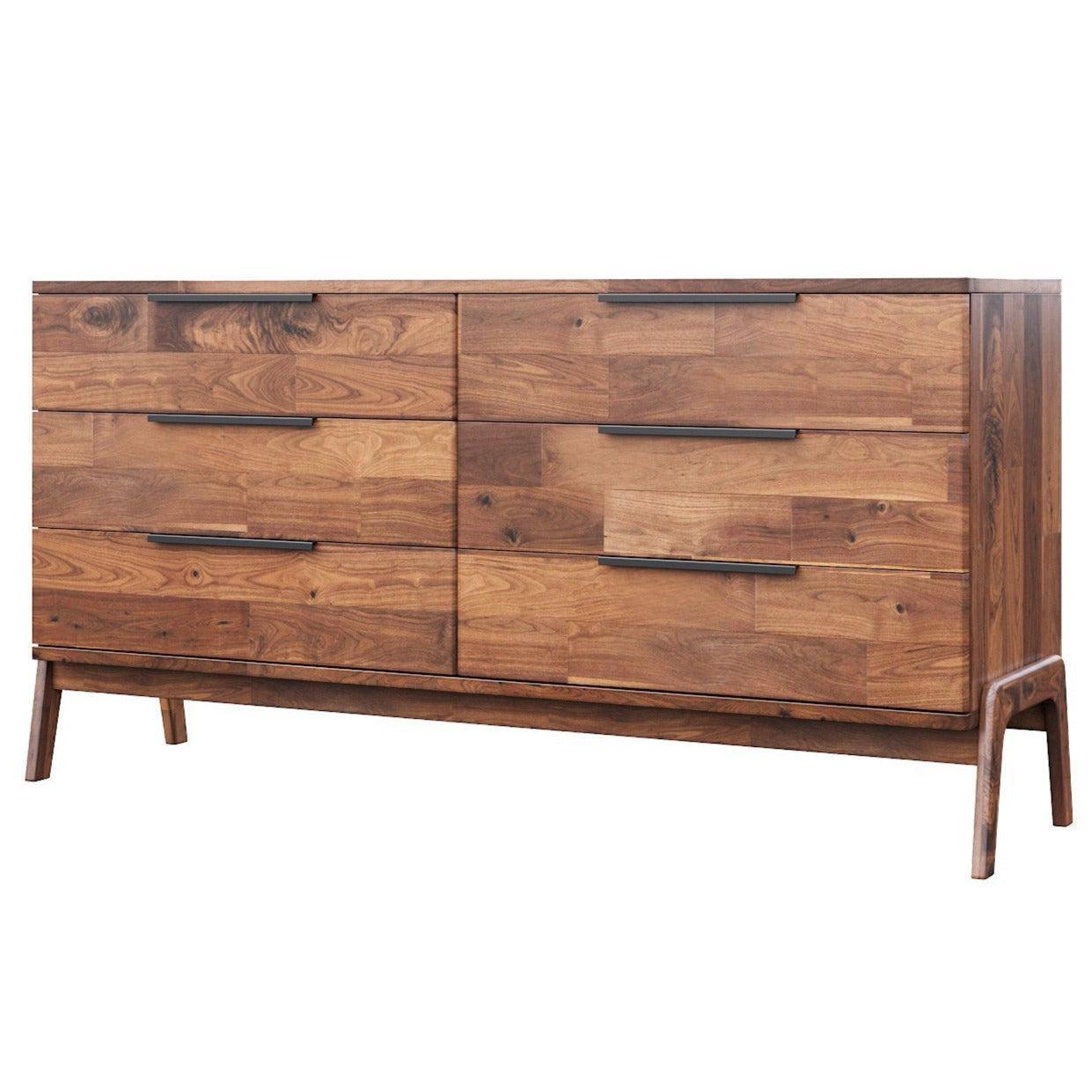 Natural Brown Solid Wood Frame Remix 6 Drawer Dresser Features: