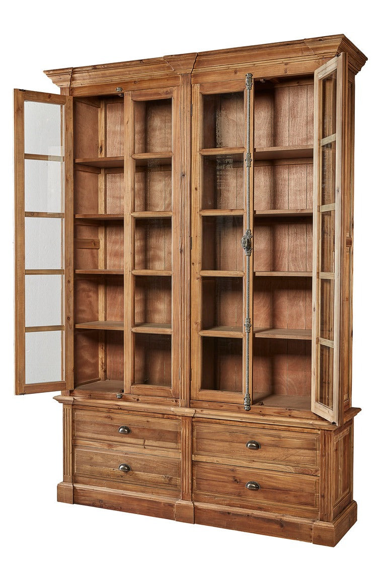 Embark on a daring journey through your library with our Natural Old Fir Bookcase. This grand cabinet boasts a stunning finish and vintage hardware, evoking a sense of nostalgia in your surroundings. Get creative and organize effortlessly with detachable shelves for adaptable storage.