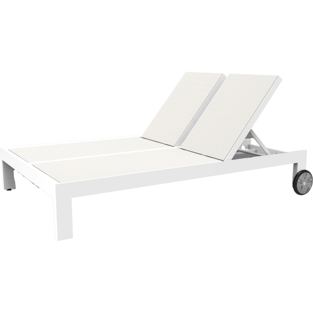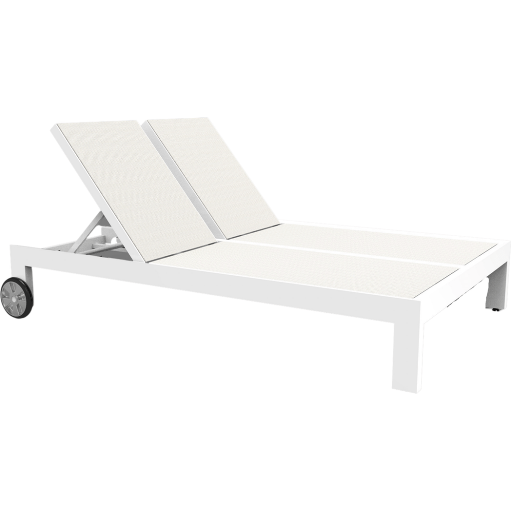 Experience outdoor relaxation with the Newport Adjustable Double Sling Chaise. Designed with a modern and contemporary style, this chaise is perfect for those who appreciate clean lines and minimalist aesthetics. Its armless linear frame ensures a sleek appearance, while the dual backrests allow two people to enjoy comfort simultaneously. Crafted from durable powder-coated aluminum, the satin Frost finish adds a touch of elegance that complements any outdoor setting.