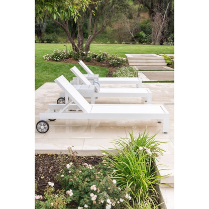 With its fully welded, scratch-resistant powder-coated aluminum frame, the Newport Sling Chaise is built to withstand the elements. The adjustable non-marring feet ensure stability on any surface, while the premium sling seat in Frost offers both style and durability. Designed with mobility in mind, this chaise includes wheels for easy repositioning, allowing you to find the perfect spot for sunbathing or relaxing. The white, cream, and beige finish complements a variety of outdoor décors, making it a versatile choice for any backyard oasis.