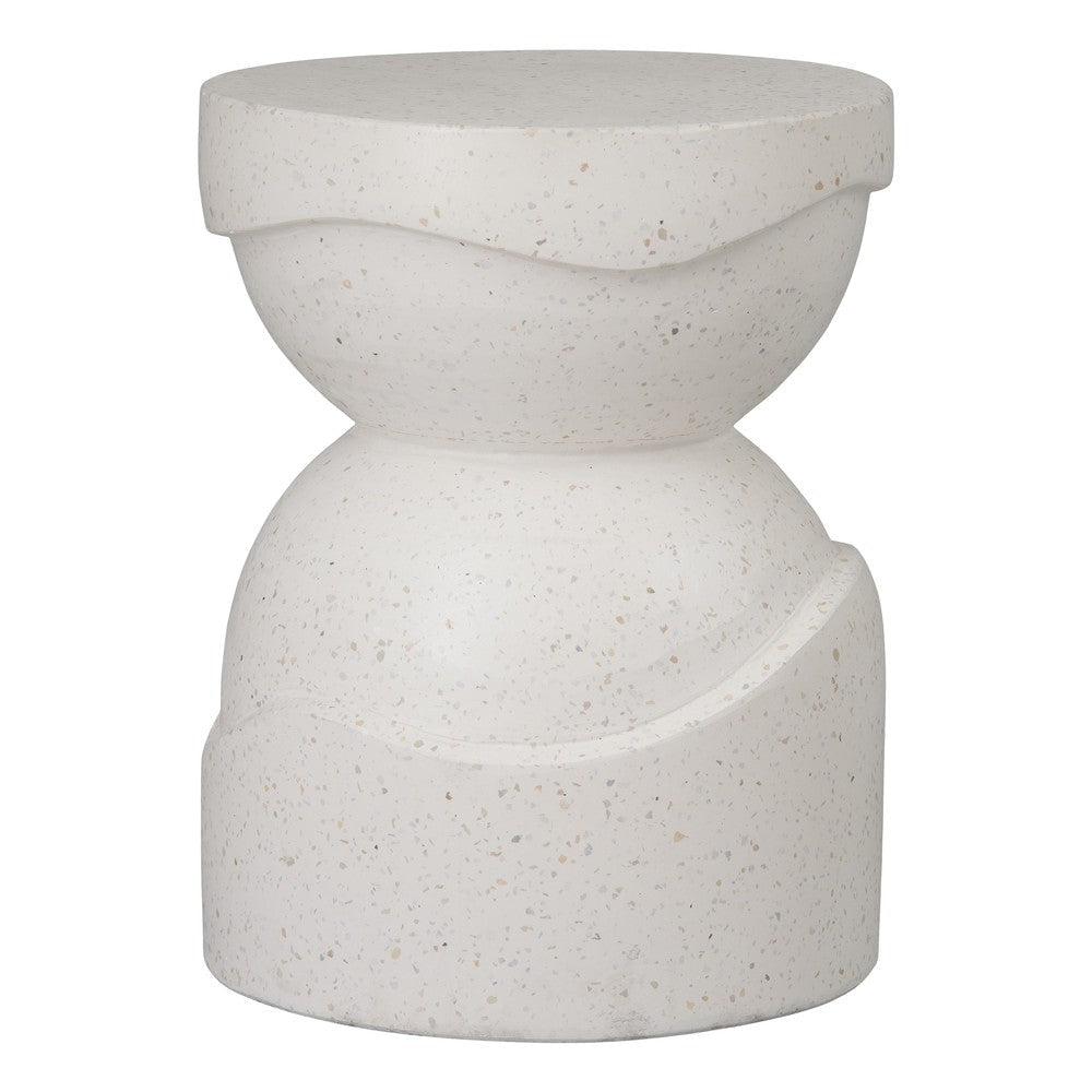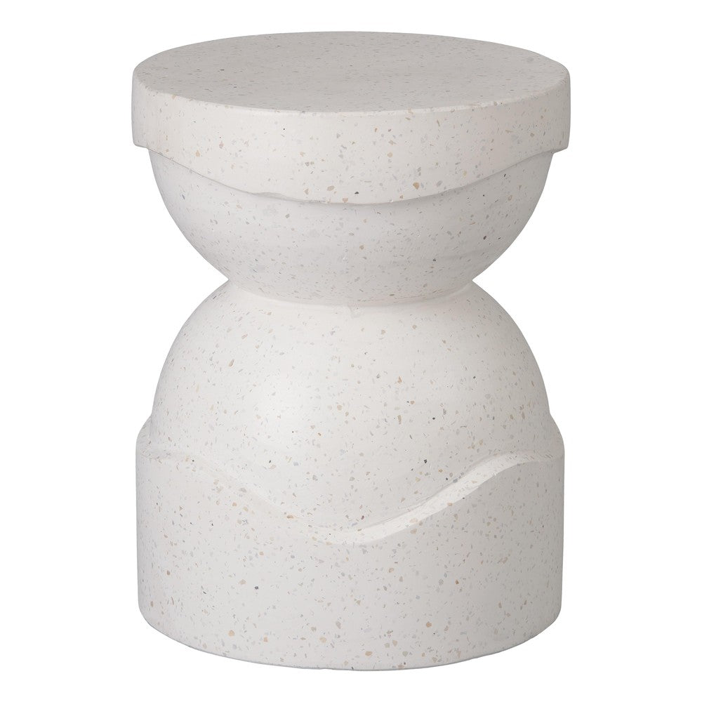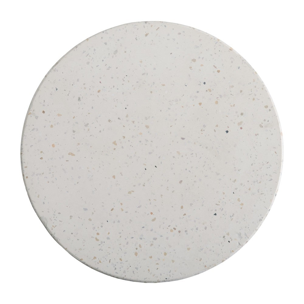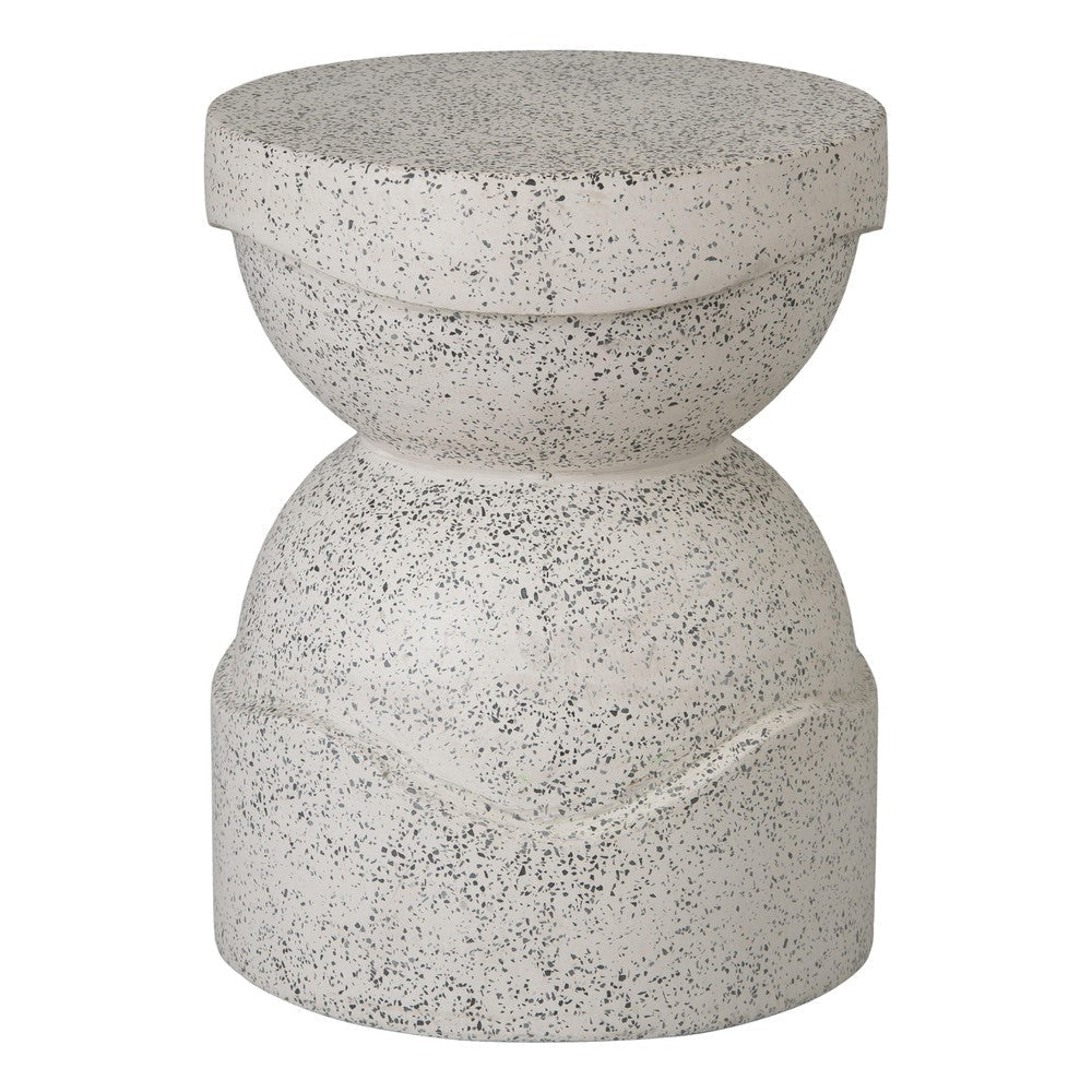 Introducing the Noah 18 in. Round Terrazzo Garden Stool - a masterpiece handcrafted from premium Terrazzo materials. Choose between Matte Taupe Pigmented Cement or White finish for a sophisticated touch. Measuring 14 in. L x 14 in. W x 18 in. H, this multi-functional stool can serve as an extra seat, plant stand, foot rest or side table. Keep it looking luxurious by wiping with a damp cloth and avoiding harsh chemicals and cleaners. Its weather-resistant design makes it perfect for both indoor and outdoor use, but remember to store it indoors during freezing weather. Elevate your space with this exclusive piece from our collection.