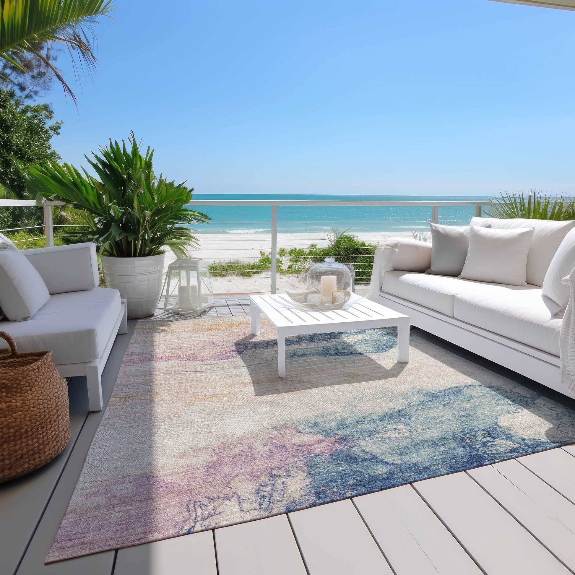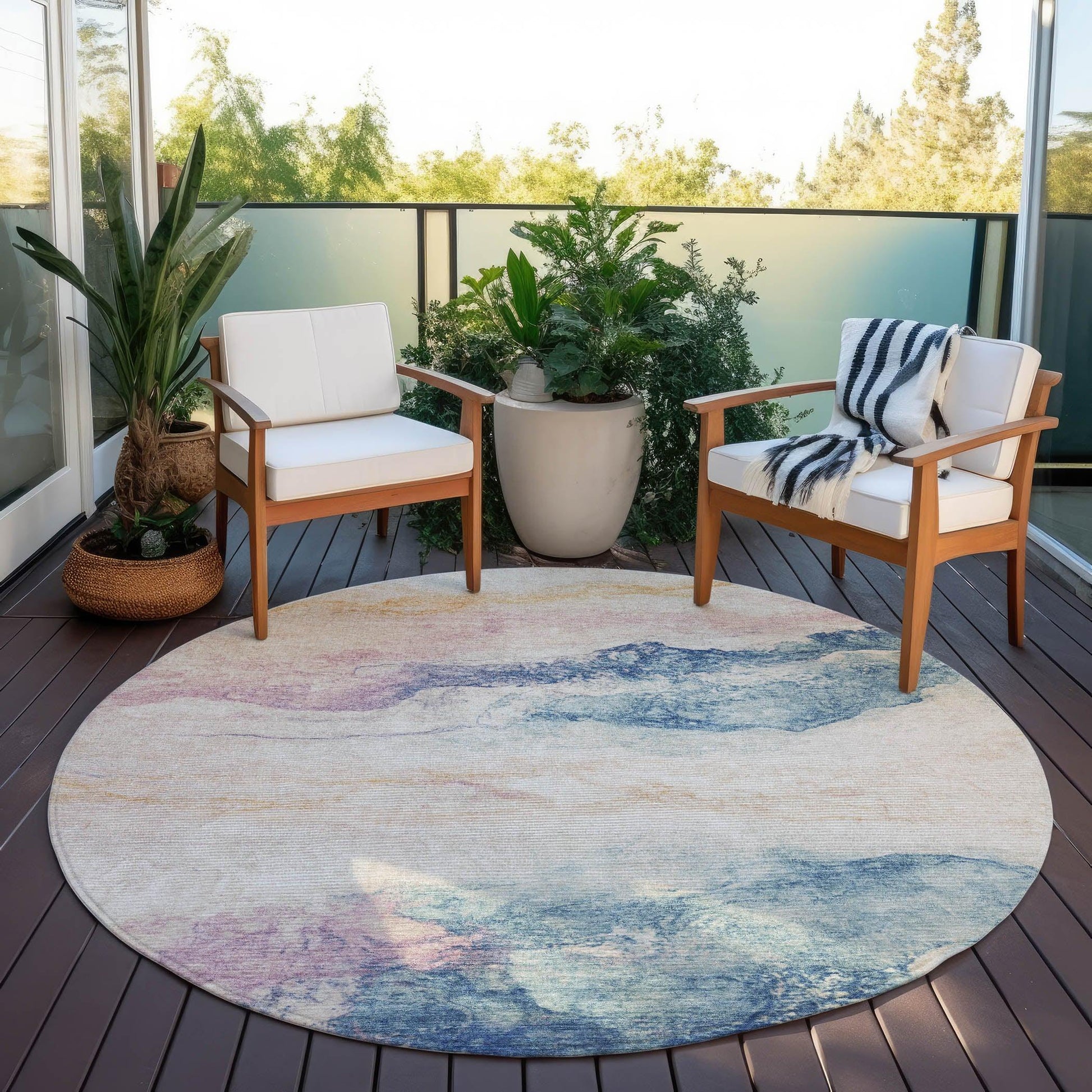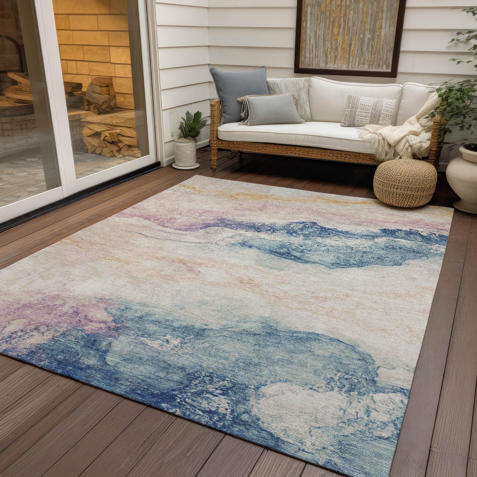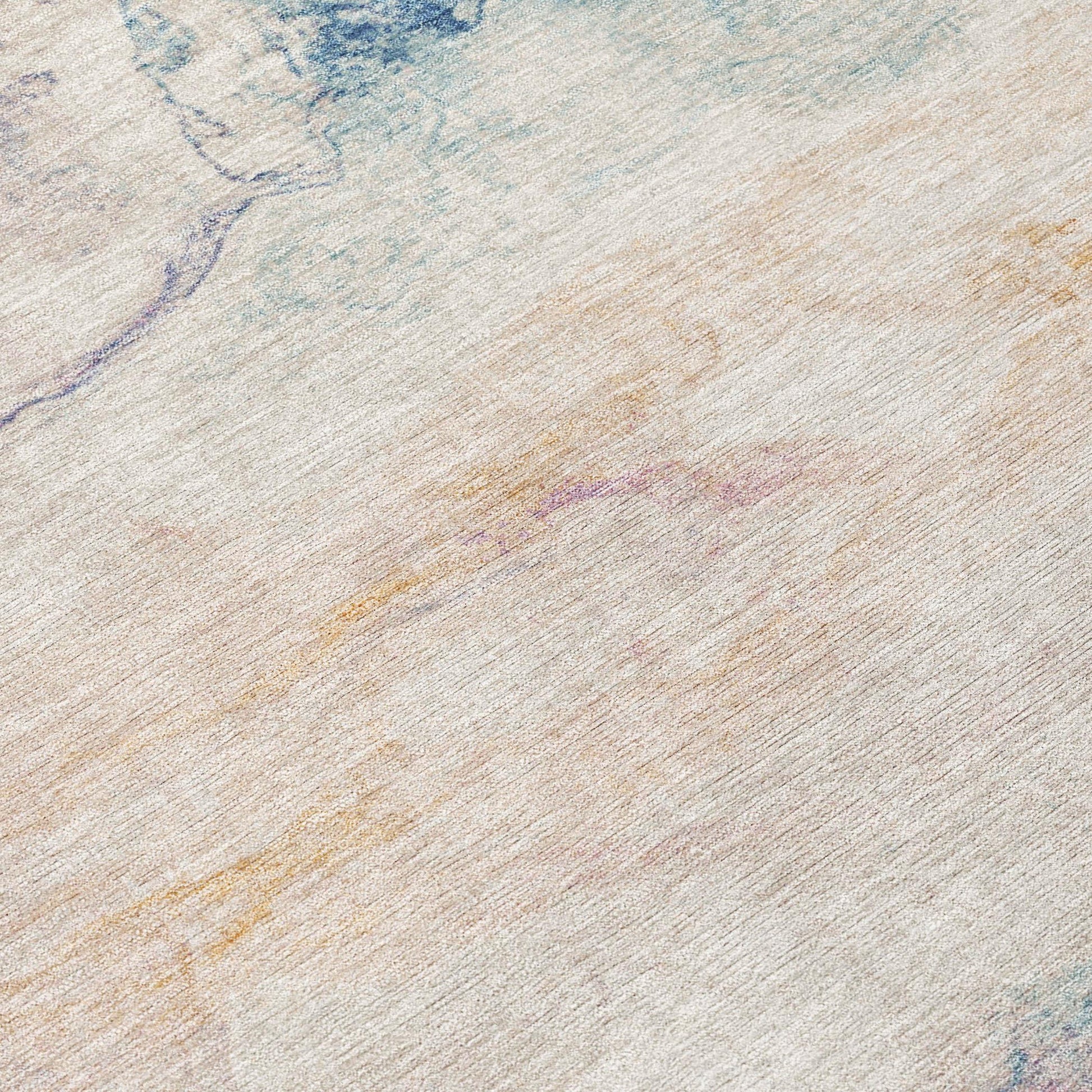 The Oelien Ivory Washable Rug is a perfect blend of style and practicality, ideal for both indoor and outdoor settings. Its alcohol ink-inspired design brings a serene and artistic touch, with flowing lines that mimic the gentle spread of ink on canvas. This modern pattern adds a sophisticated flair, making it suitable for spaces that mix classic and contemporary styles. Crafted from durable polyester, this rug features a UV-stabilized construction, ensuring it stands up to sunlight exposure, making it an excellent choice for outdoor areas.