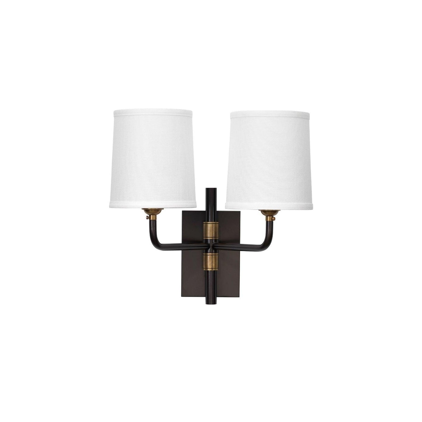 Traditional wall sconces are upgraded and elevated in the Lawton collection from Jamie Young. She adds the strength of steel and the softness of linen to lines just a little cleaner, newer, and more sophisticated than offered elsewhere, creating this classic choice for an elevated home. Available in one or two light options, each is beautifully crafted with hardware in an antique brass finish and white tapered shades. Professional installation is recommended. The Lawton collection from Jamie Young offers a classic and sophisticated choice for an elevated home with its traditional wall sconces. Upgraded with the strength of steel and the softness of linen, these sconces feature clean and modern lines that stand out among other options.