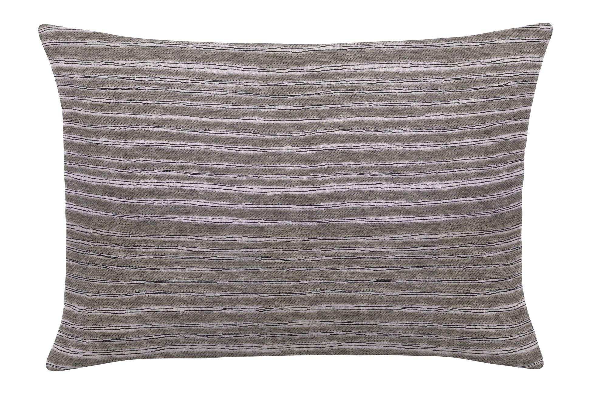 The Ondine Gravel Outdoor Pillow offers a blend of style and durability, perfect for enhancing any outdoor space. Part of the Rainy Day collection, this pillow showcases a sophisticated gray color with thin white horizontal stripes, adding a touch of elegance to your patio or garden. Handmade in the USA, it boasts surged seams and a hidden zipper, ensuring both longevity and a sleek appearance. The textured fabric not only adds to its aesthetic appeal but also provides a comfortable feel, making it a delightful addition to your seating area.