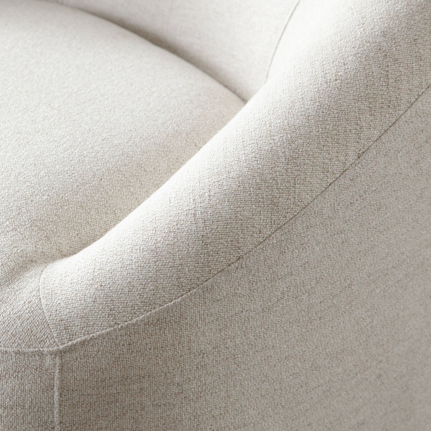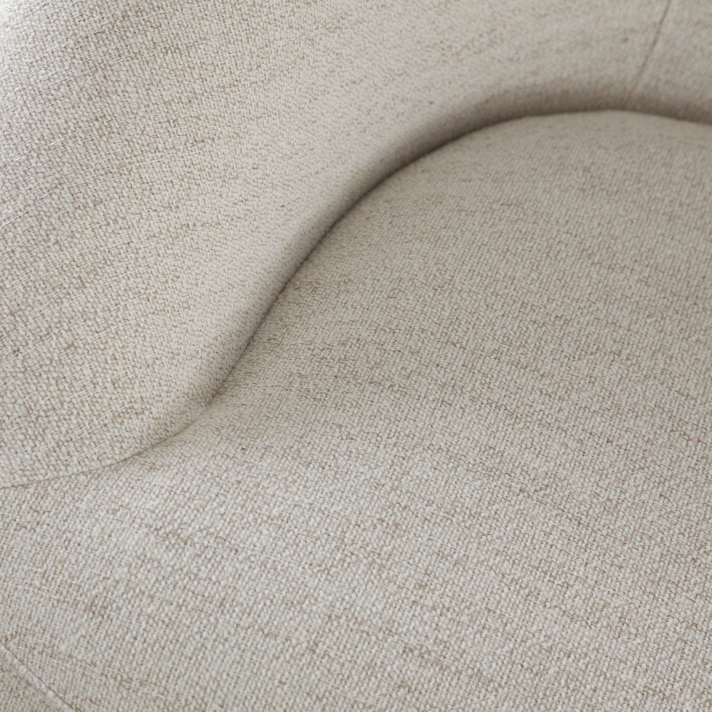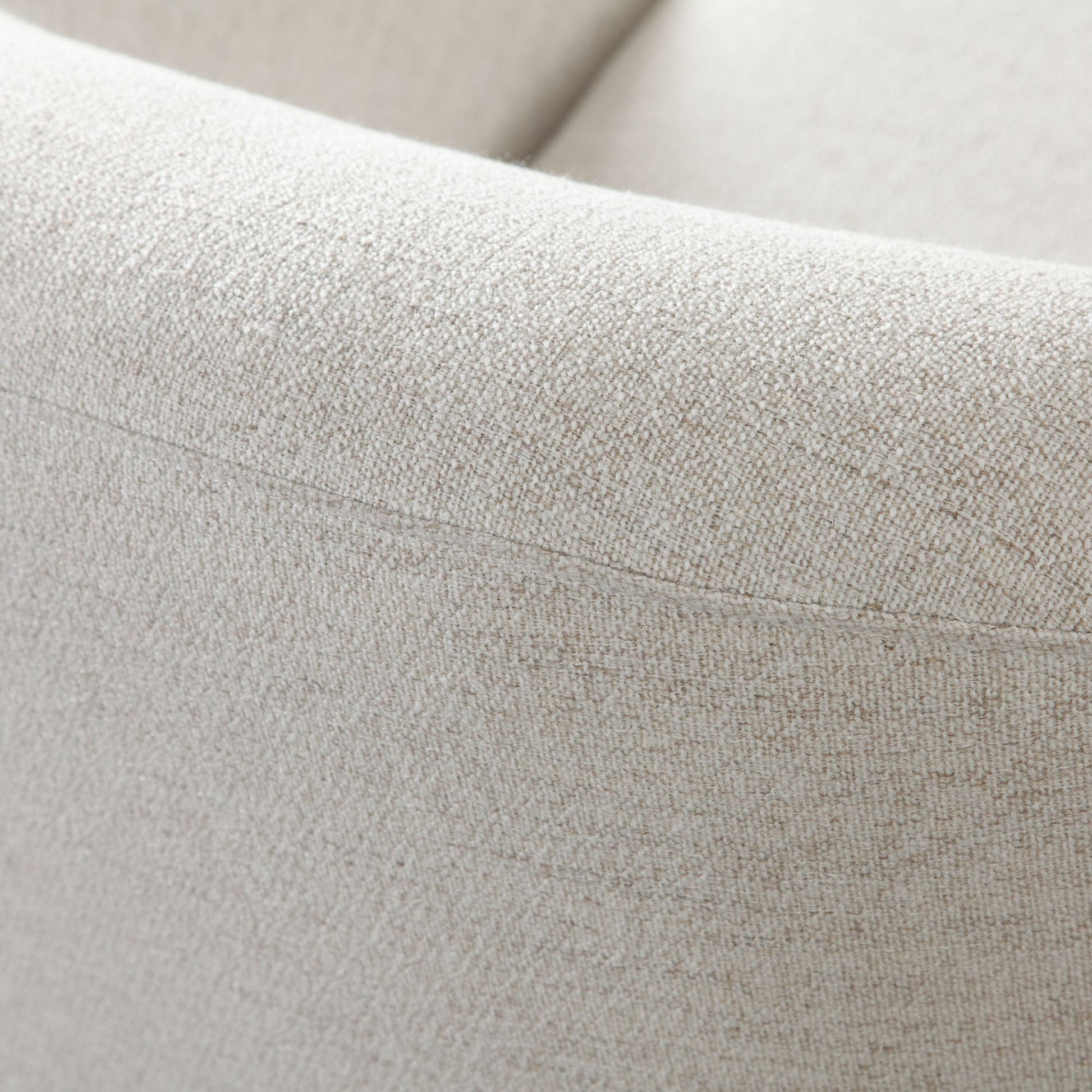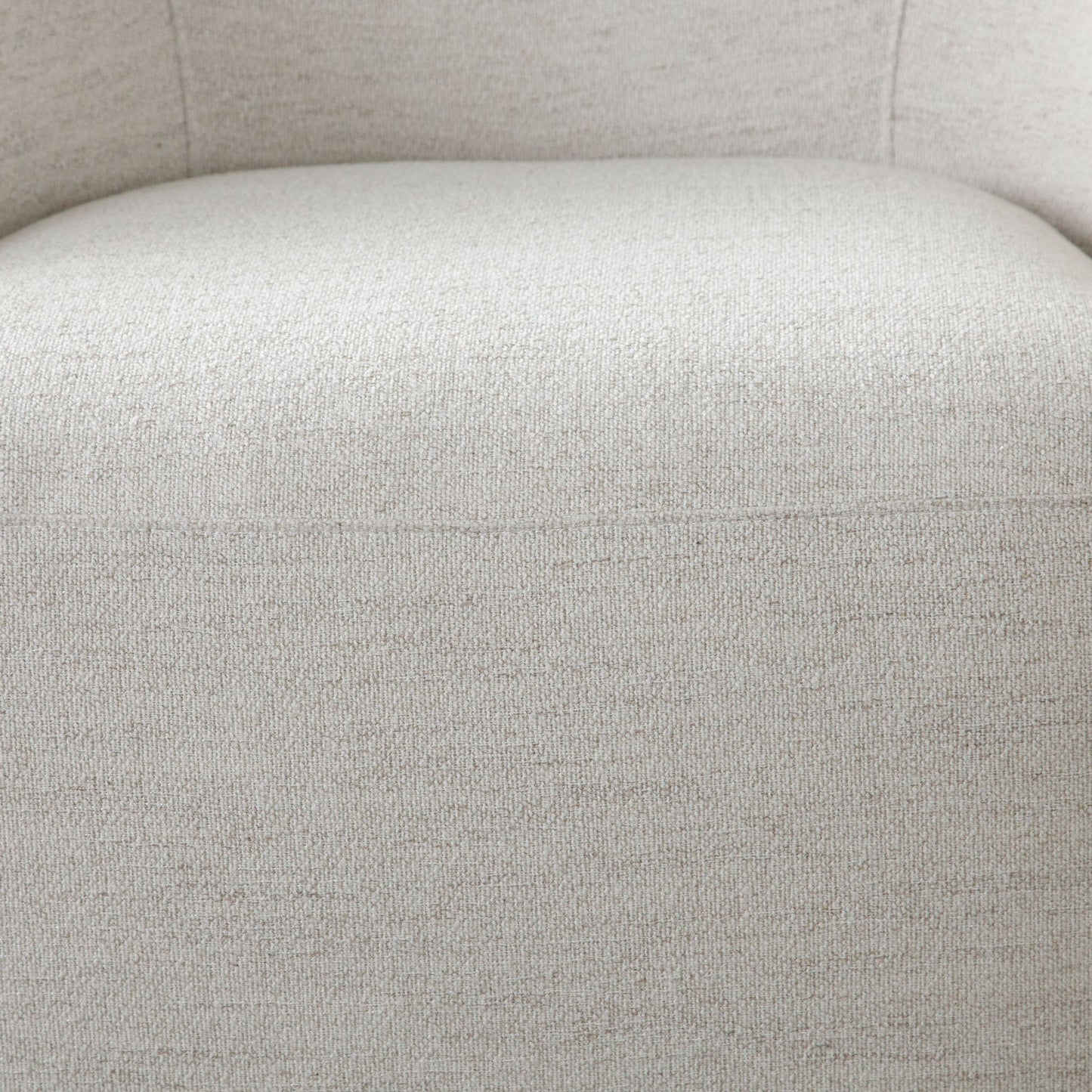 This swivel chair features a 360-degree swivel mechanism, allowing you to turn effortlessly and engage in conversations around the room without moving the chair. The soft Light Oat fabric, crafted from Polydacron and Polyester fibers, ensures durability and comfort. The attached seat and cushion add to the chair's convenience, ensuring a cozy seating experience every time.