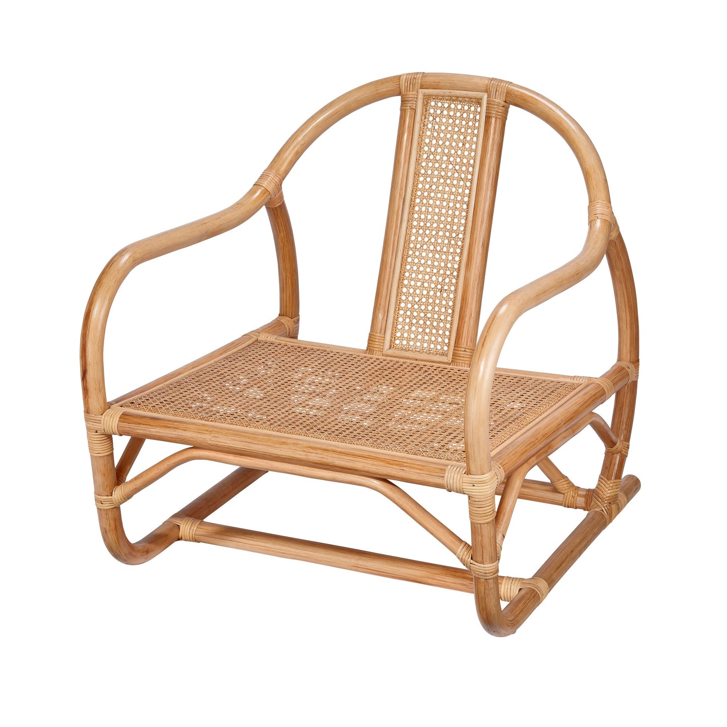 Inspirations from British colonial to mid-century modern come together in this contemporized take on a classic rattan armchair. The sleek, low-slung style is perfect for lounging; place next to a sunny window or a tall houseplant to bring that vacation feeling home!