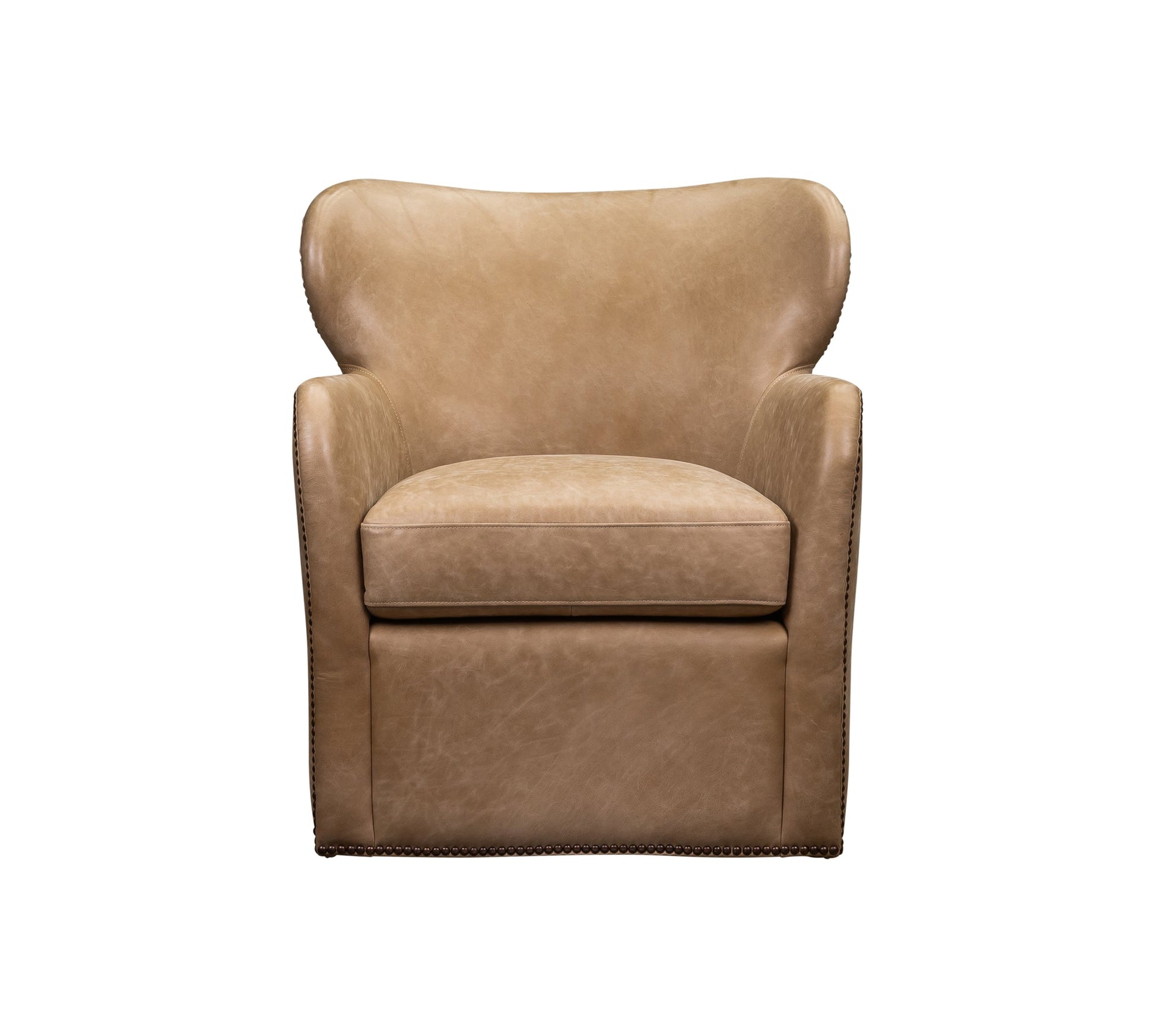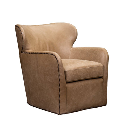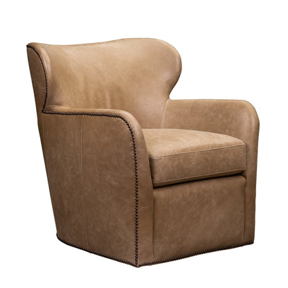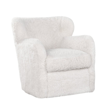 The Orleans Swivel Chair brings together timeless elegance and modern functionality, making it a versatile addition to any space. Available in three exquisite finishes—Collins Celadon leather, and Shearling—this small-scale chair is designed to leave a lasting impression. Each variation features a sophisticated swivel design, rounded armrests, and plush upholstery, ensuring both style and comfort. The Collins Celadon finish adds a touch of refinement with its smooth leather texture and nailhead trim, The Shearling finish delivers cozy appeal with its contemporary design, making it perfect for traditional or modern interiors alike.