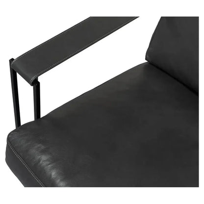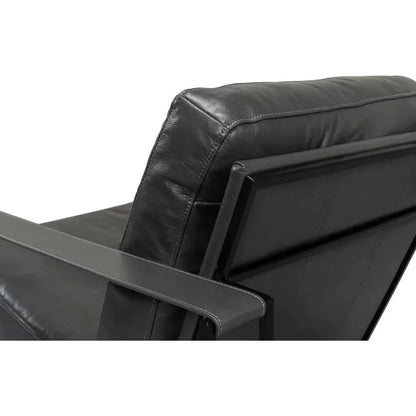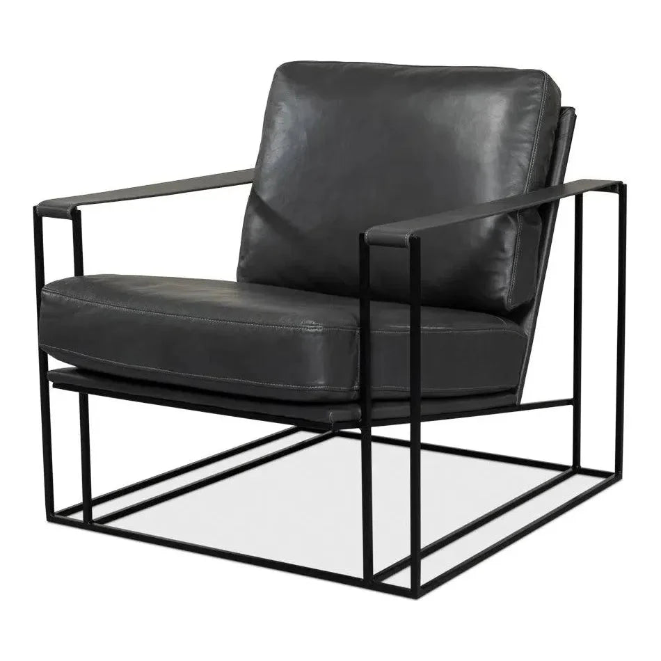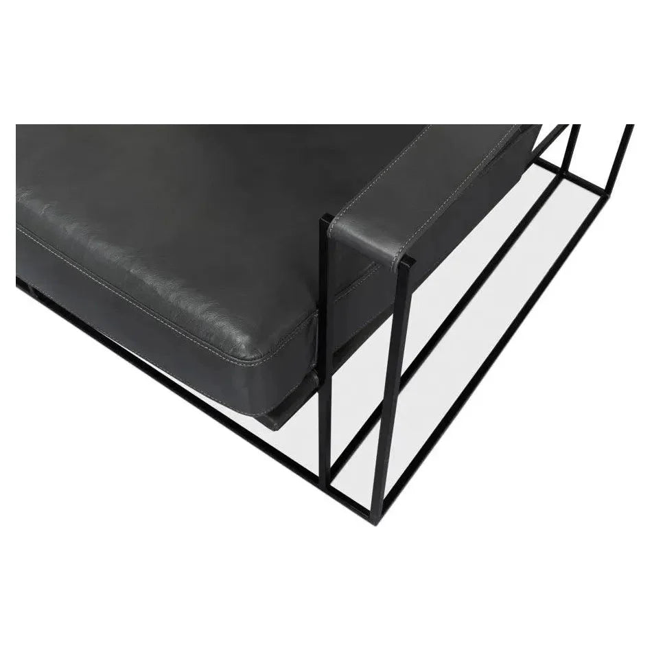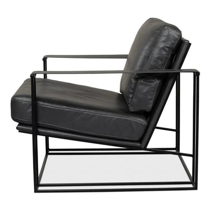 Introducing the Oryan Black Leather Accent Chair Metal Frame, a versatile and sophisticated addition to any living space. Featuring a generous seat and elegant design, the chair offers both comfort and style. Made with durable Leather Upholstery and an iron metal frame, it adds a modern touch to any room as an accent chair or part of your seating ensemble.
