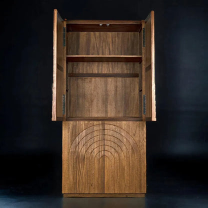 Discover timeless design and exceptional craftsmanship with the Otto Hutch Walnut Tall Bookcase Cabinet. Made from premium walnut wood with intricate details and a warm finish, this classic piece is both stylish and practical. Showcase your favorite volumes in a refined and elegant manner with the Otto Hutch. Handcrafted from minimally finished walnut wood, this pared-down design highlights the natural beauty and simplicity of the wood. Perfect for lovers of classic style and fine details, the Otto Hutch Walnut Tall Bookcase Cabinet is a unique addition that will elevate any space. Elevate your space with the timeless elegance and exquisite craftsmanship of the Otto Hutch.