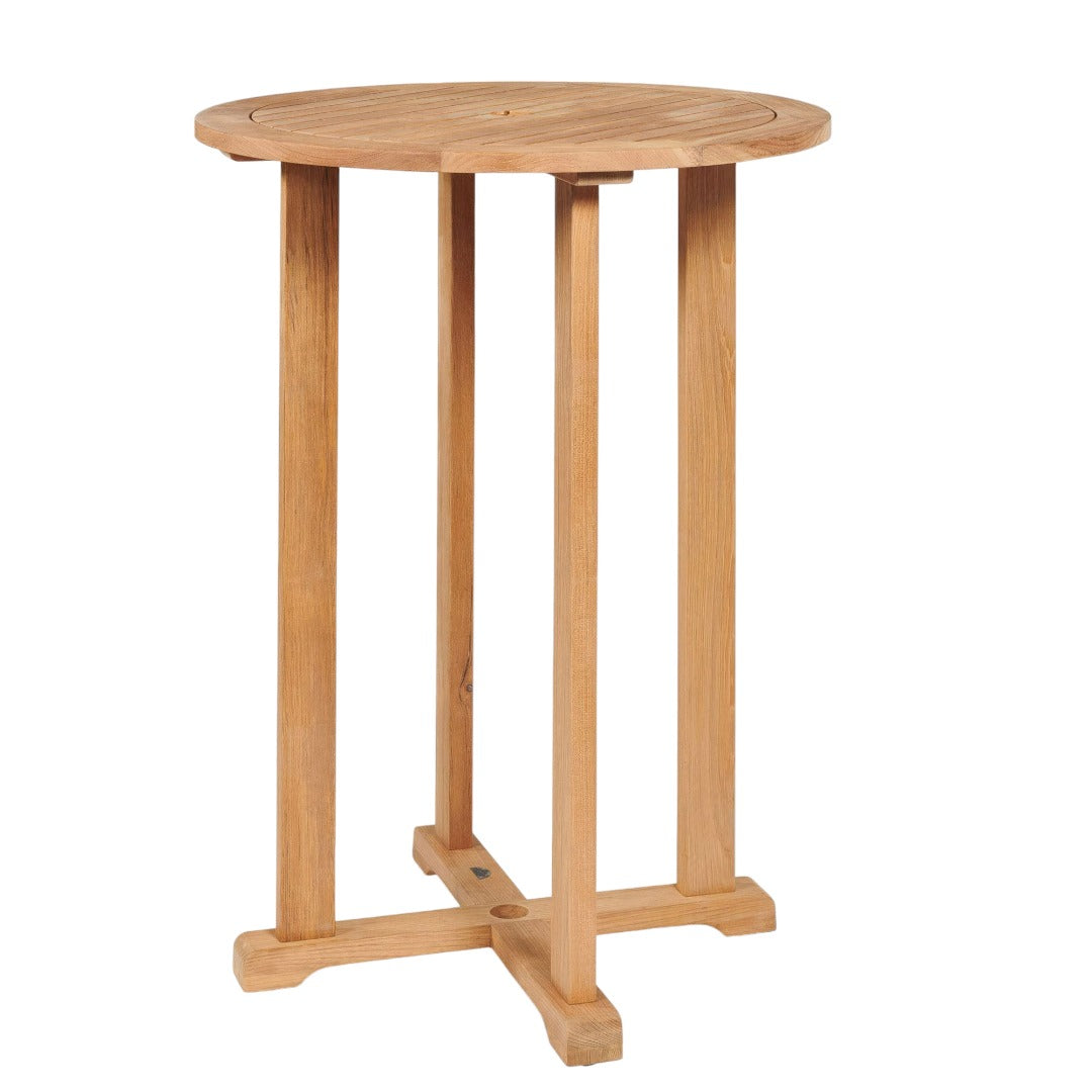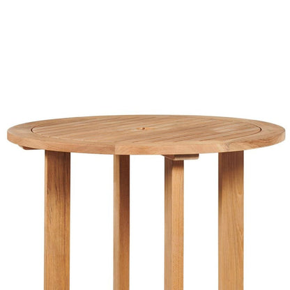 Palm 3-Piece Round Bar Height Teak Outdoor Dining Set Features: