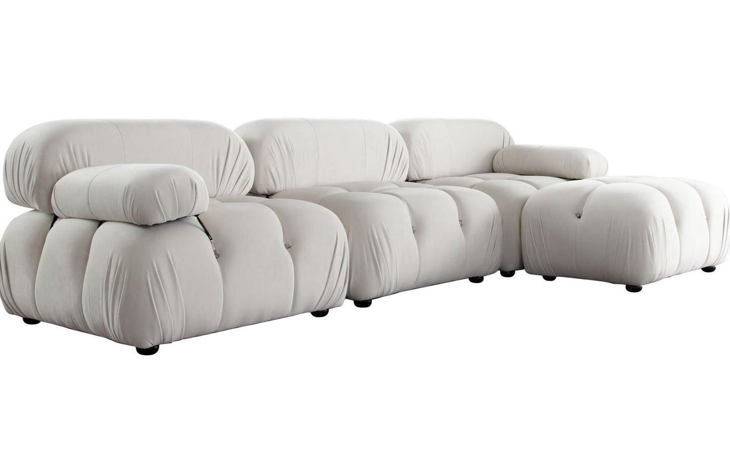 Paloma 4PC Modular 111 Inch Reversible Chaise Sectional in Light Cream Velvet Features: