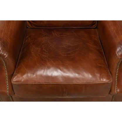 The Papa's Chair is a true representation of timeless design and unparalleled comfort, steeped in tradition. With its Wooden frame and Vintage Havana Leather upholstery in a rich brown shade, it exudes elegance. The striking nailhead trim, a symbol of classic craftsmanship, adds to the visual appeal and the generous seating area promises ample space for relaxation. Experience ultimate comfort with Papa's Chair Comfortable Leather Club Chair - a perfectly designed piece that combines luxury and style.