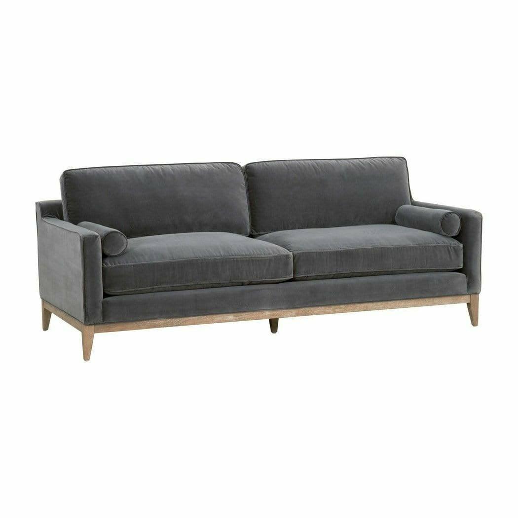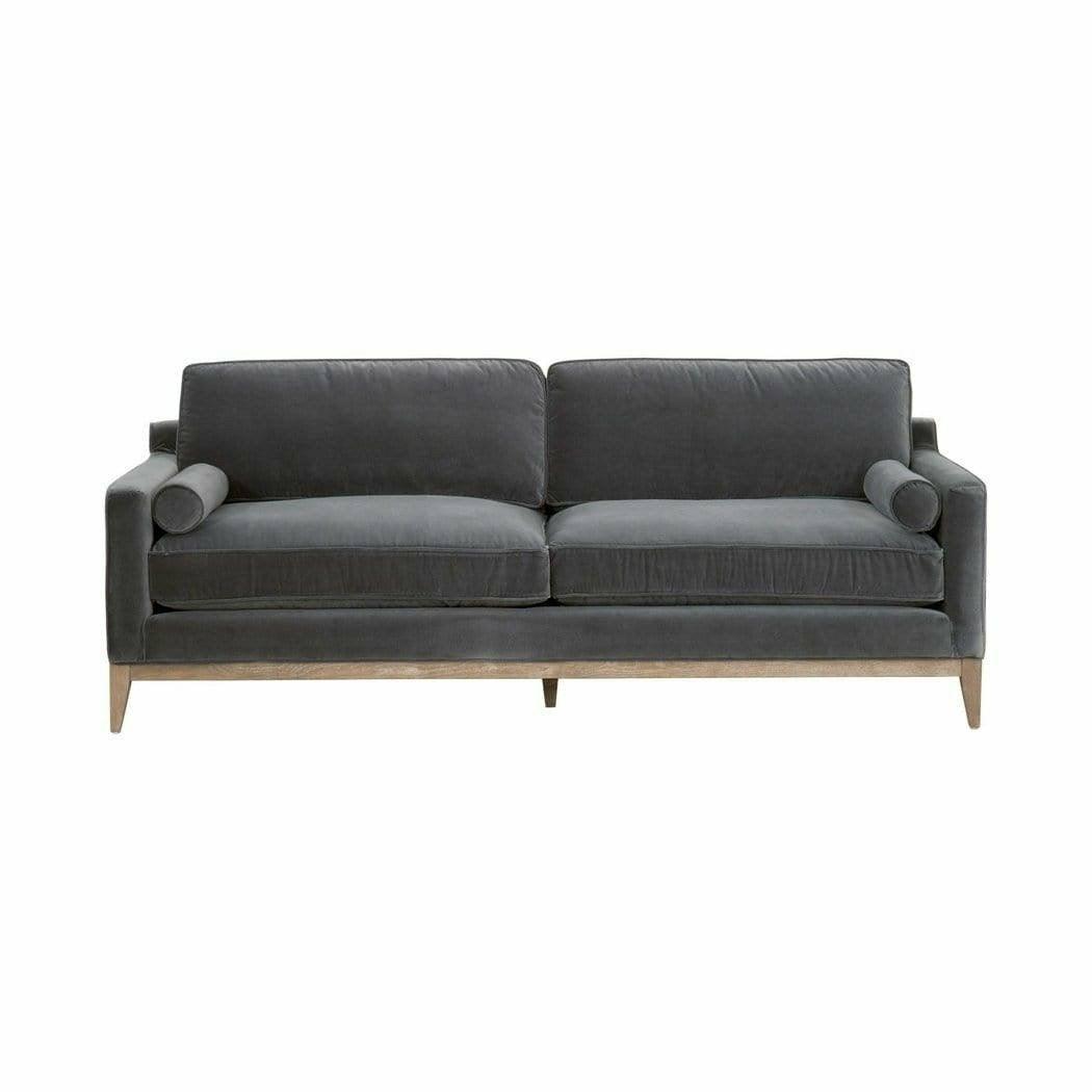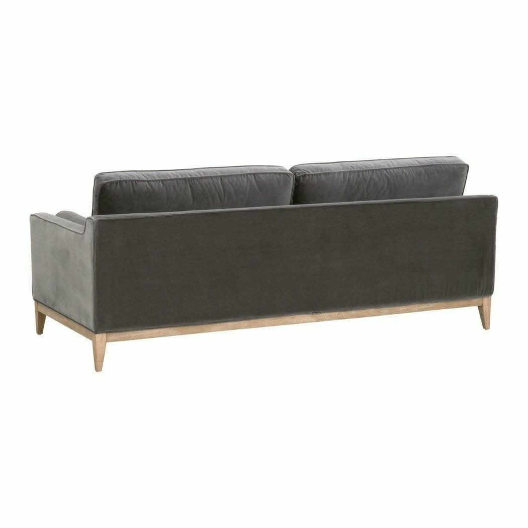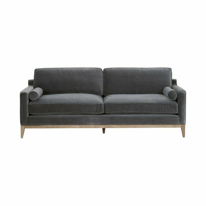 Parker 86" Post Modern Sofa Dark Dove Velvet, Natural Gray Oak Features: