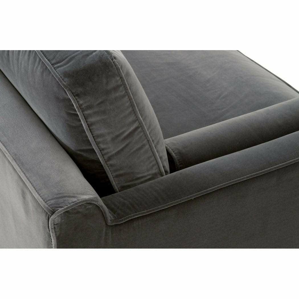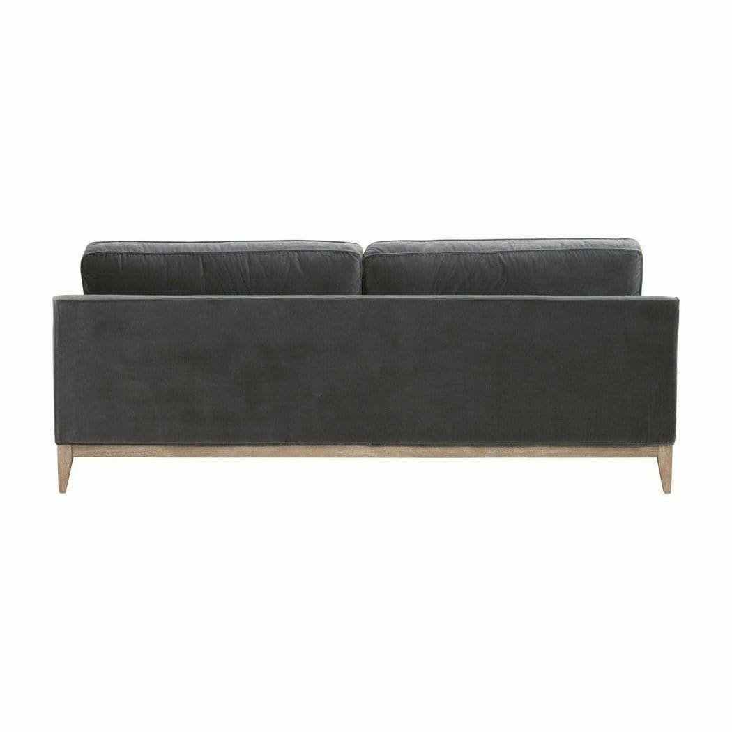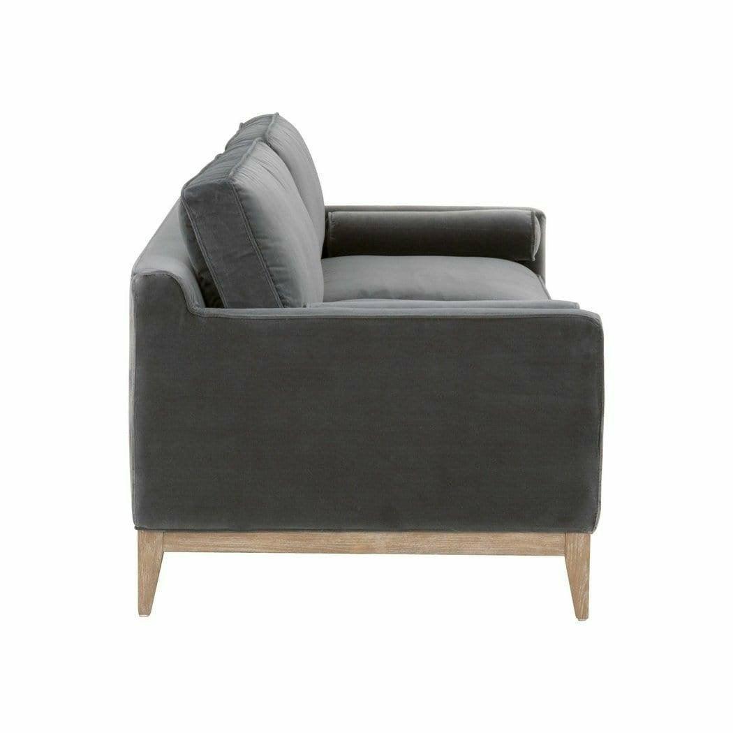 Parker 86" Post Modern Sofa Dark Dove Velvet, Natural Gray Oak Features:
