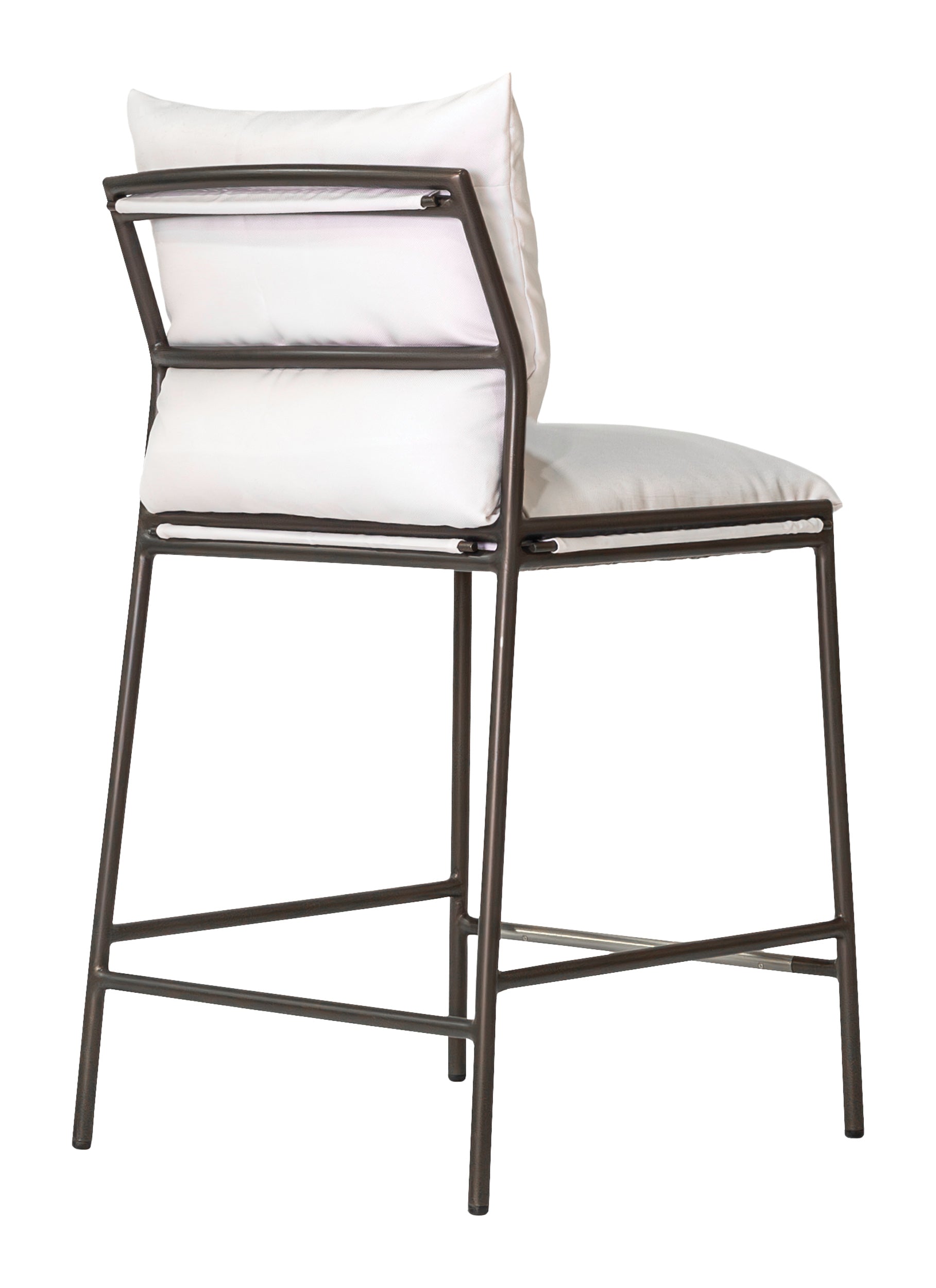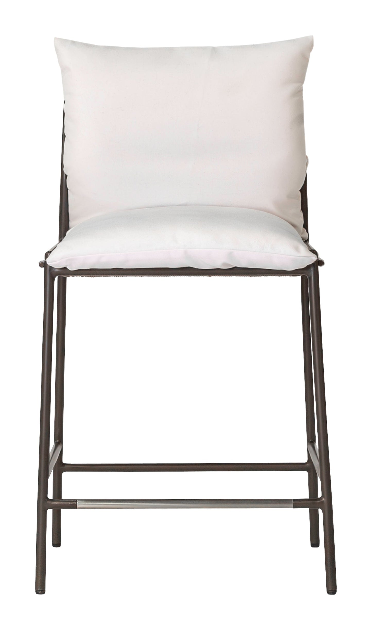 This counter chair combines style and function with its smooth charcoal satin finish and sturdy powder-coated aluminum frame. Built to withstand harsh conditions, it features a heavy-duty aluminum construction and precision fabrication with seamless welding. The chair includes a custom quick-dry crushed foam cushion and a luxurious Agora Panama Blanco upholstery, offering both comfort and sustainability. It also comes with a spun polyester furniture cover and storage bag, ensuring protection and convenience.