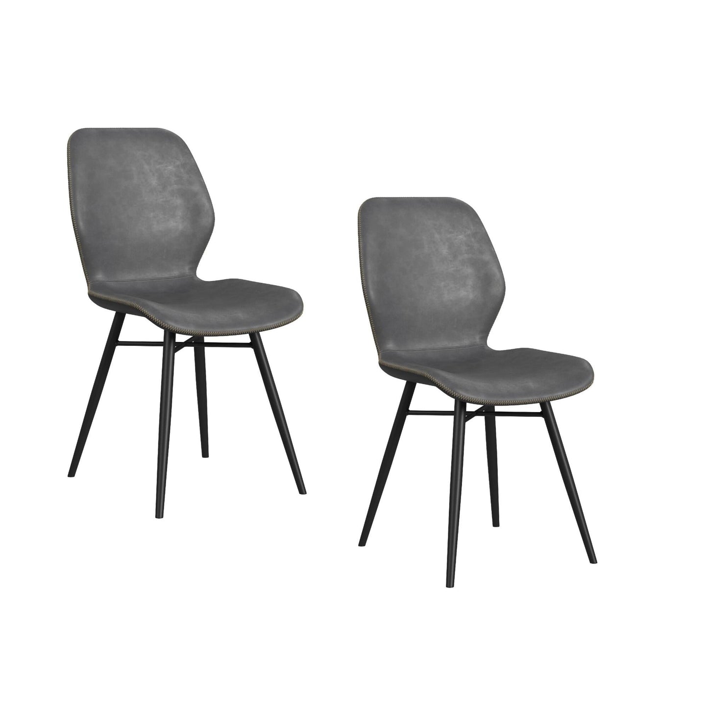 The Paul Dining Chair features contemporary styling. The modern tapered back and seat are upholstered in a charcoal vegan leather detailed with oversized stitching on the sides. The black metal chair frame features angled legs and an X detail base. Seat Dimensions: 18.28"W x 16"D x 17.5"H. Additional features include drive in floor glides on the legs and a high density foam seat cushion. Get ready to take your dining space to the next level with our Paul Metal Black Armless Dining Chair! Our sleek and stylish design will add a touch of modern elegance to any room.
