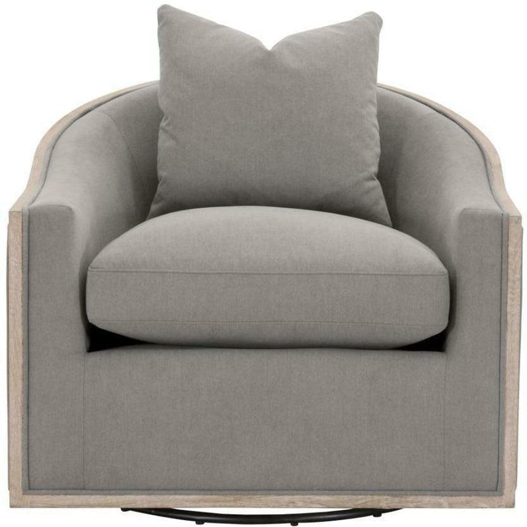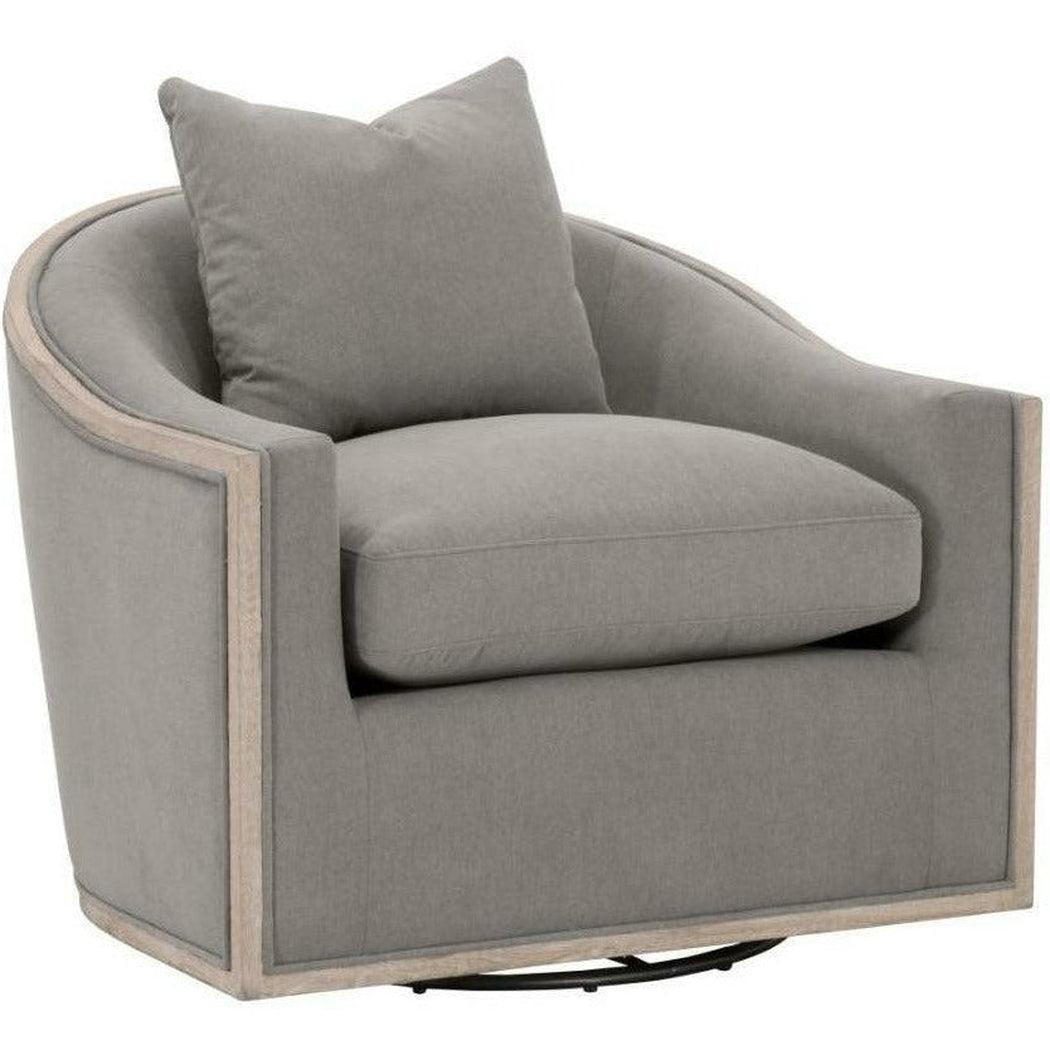 Elevate your living space with the Paxton Gray Swivel Club Chair. This chair exudes transitional style and boasts a 360-degree swivel frame and premium, performance fabric for a luxurious touch. Use it to enhance your seating options or make a statement as a striking centerpiece. With its exquisite design, this chair effortlessly complements your existing furniture while adding sophistication and versatility to your decor. Bring a touch of artistry to any room with this exceptional piece. Its 360-degree swivel frame and premium fabric elevate your space to new levels of elegance and flexibility. Say goodbye to dull seating options and upgrade your decor with this exquisite transitional club chair.