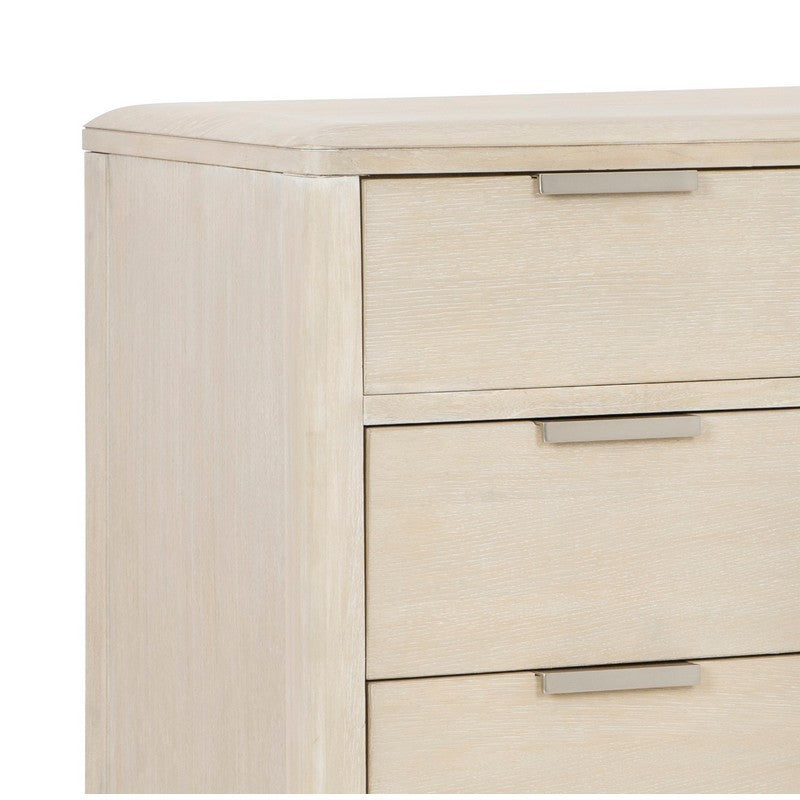 Introducing the Pearl Asymmetrical Door Chest, a standout piece that brings both function and style to any room. Crafted from high-quality materials, including rubberwood and Mindi, this chest showcases a charming transitional design. The white oak veneers, paired with a soft sand finish, create a warm and inviting look. The chest features four drawers and a door, offering ample storage space with its English dovetail construction. Each drawer glides smoothly on metal side-mounted full-extension guides, ensuring easy access to your belongings. The natural stained and sealed veneer drawer bottoms provide added protection for your items.