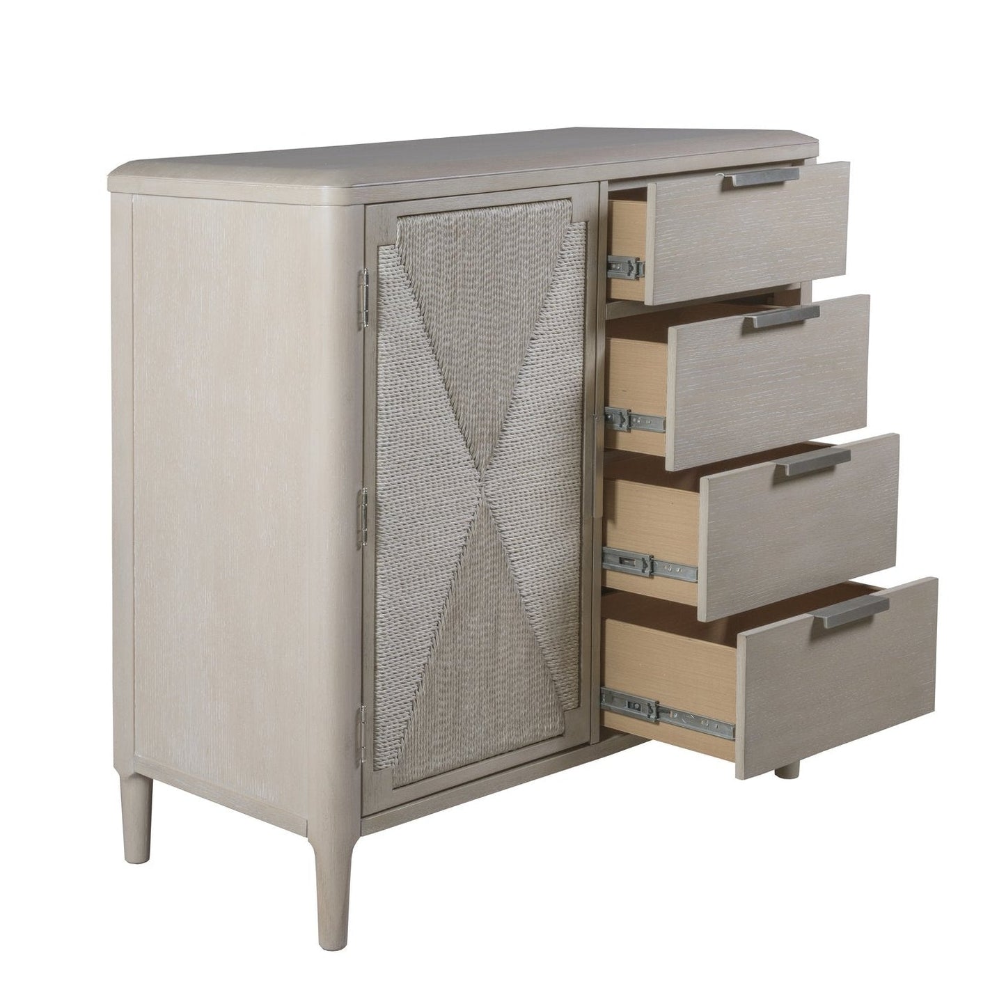 Pearl Asymmetrical Door Chest With X-Design Weave Features: