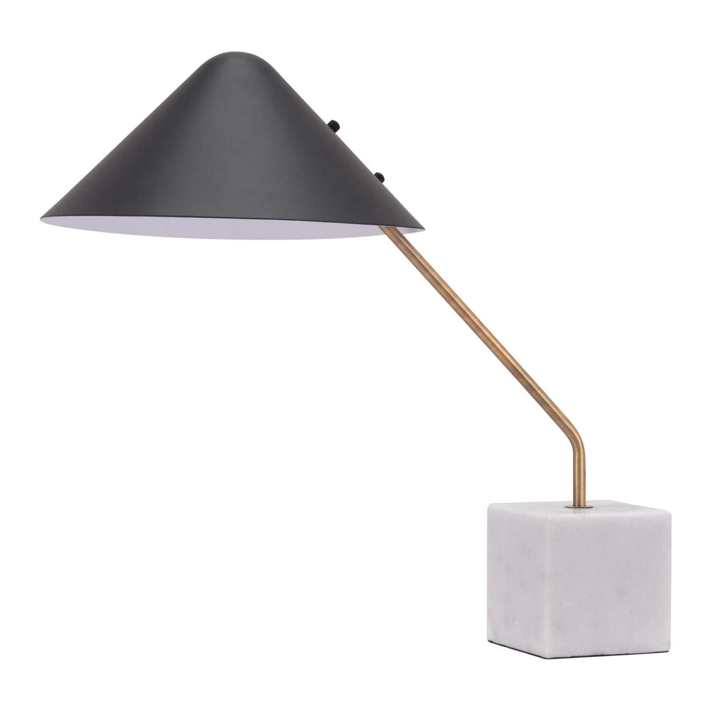 Take on any task with the bold and stylish Pike Table Lamp Black White. Its overreaching conical steel shade and adjustable cube base provide perfect lighting for your desk or bedside table. Assembly tools included. Dimmable with soft towel cleaning. Start your new adventure with the included 40W bulb. Overreaching and so stylish. This retro modern table lamp with its conical steel shade will go out of its way to keep you on task. Simply turn its white cube base to direct light exactly where you need it. Perfect on your desk or bedside table. Starter Bulb is included.