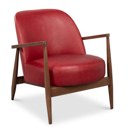 Pindar Armchair Leather New Rouge Red Mid-Century Style Features: