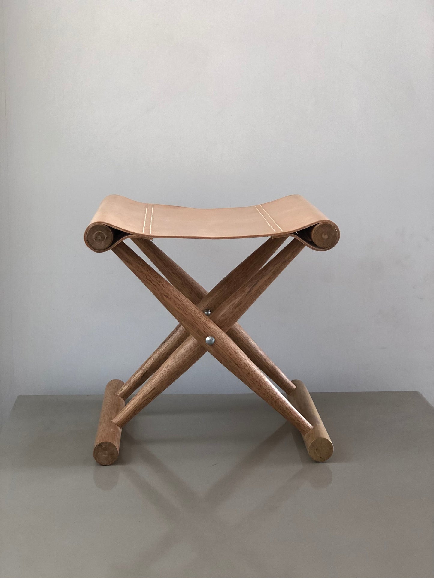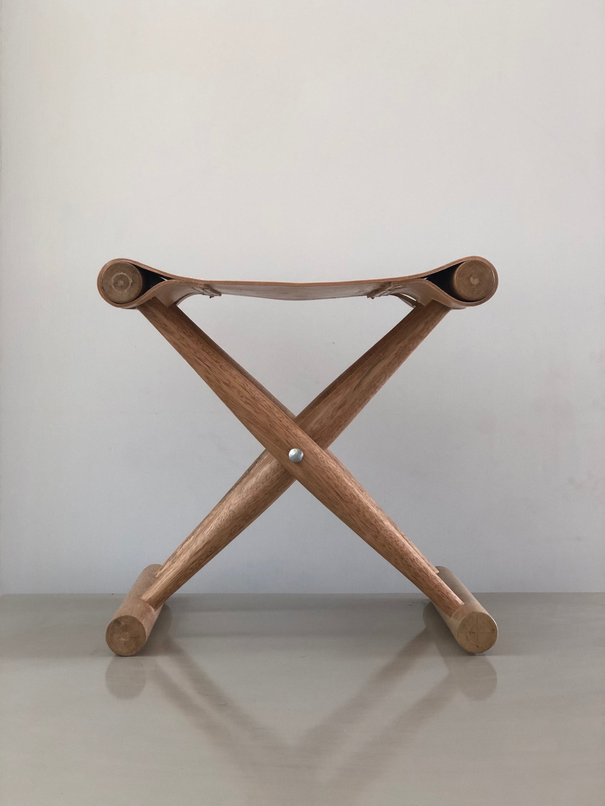 Stool Polo Classic Brown Leather Wood Folding Seat Features: