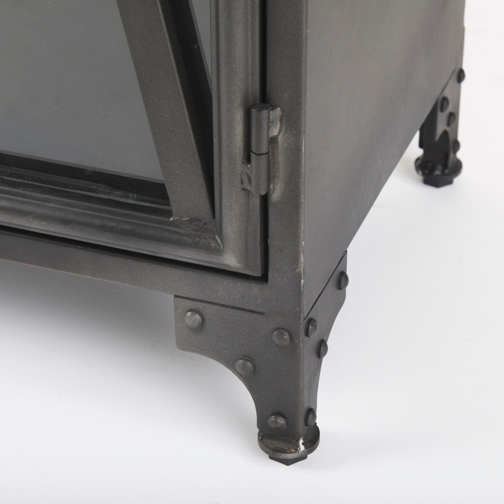 The Poppy Metal Black Bookcase With Glass Doors is a stylish and functional piece that adds character to any room. Crafted from sturdy black metal, this cabinet is designed to last while providing a sleek industrial look. Its tall and rectangular shape, combined with decorative feet, fits seamlessly into various design styles, particularly those inspired by farmhouse or industrial aesthetics. The cabinet features two large glass-lined doors with pivoting handles and a secure locking mechanism, ensuring your items are both displayed beautifully and kept safe.