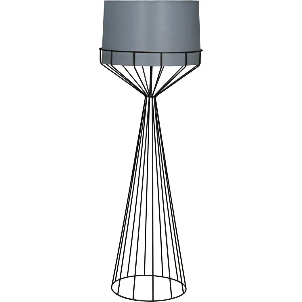 The Portal Black Steel Floor Lamp features a sleek, tapered design that adds a touch of modern elegance to any room. The sturdy black metal cage expertly diffuses the warm light from a powerful 60W bulb, creating a cozy and inviting atmosphere. Perfect for adding both style and function to your space. A tapered black metal cage narrows as it rises from the floor, then widens again to meet a gray styrene shade that filters the light from a 60W bulb. Expertly crafted with a sleek tapered design, the Portal Black Steel Floor Lamp adds a touch of modern elegance to any room.