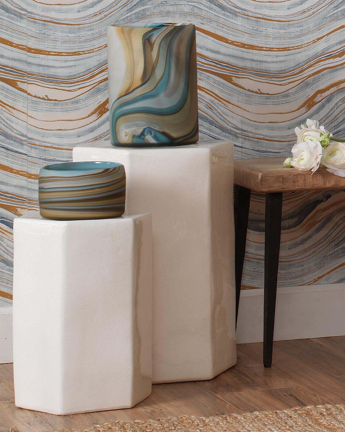 The Porto Ceramic Mid Century Modern Side Tables are expertly handcrafted to bring versatile style and lasting durability to any home. Featuring sleek geometric designs in crisp ceramic, these tables come in a variety of finishes including light blue, dark blue, grey, taupe, and white, with both large and small size options. Each piece is hand-glazed with unique variations in tone, texture, and finish, giving every table its own distinct character. Designed with clean lines and contemporary appeal, they serve as multifunctional accents that fit seamlessly into transitional, coastal, modern, or nautical interiors, while also being suitable for mild outdoor use.
