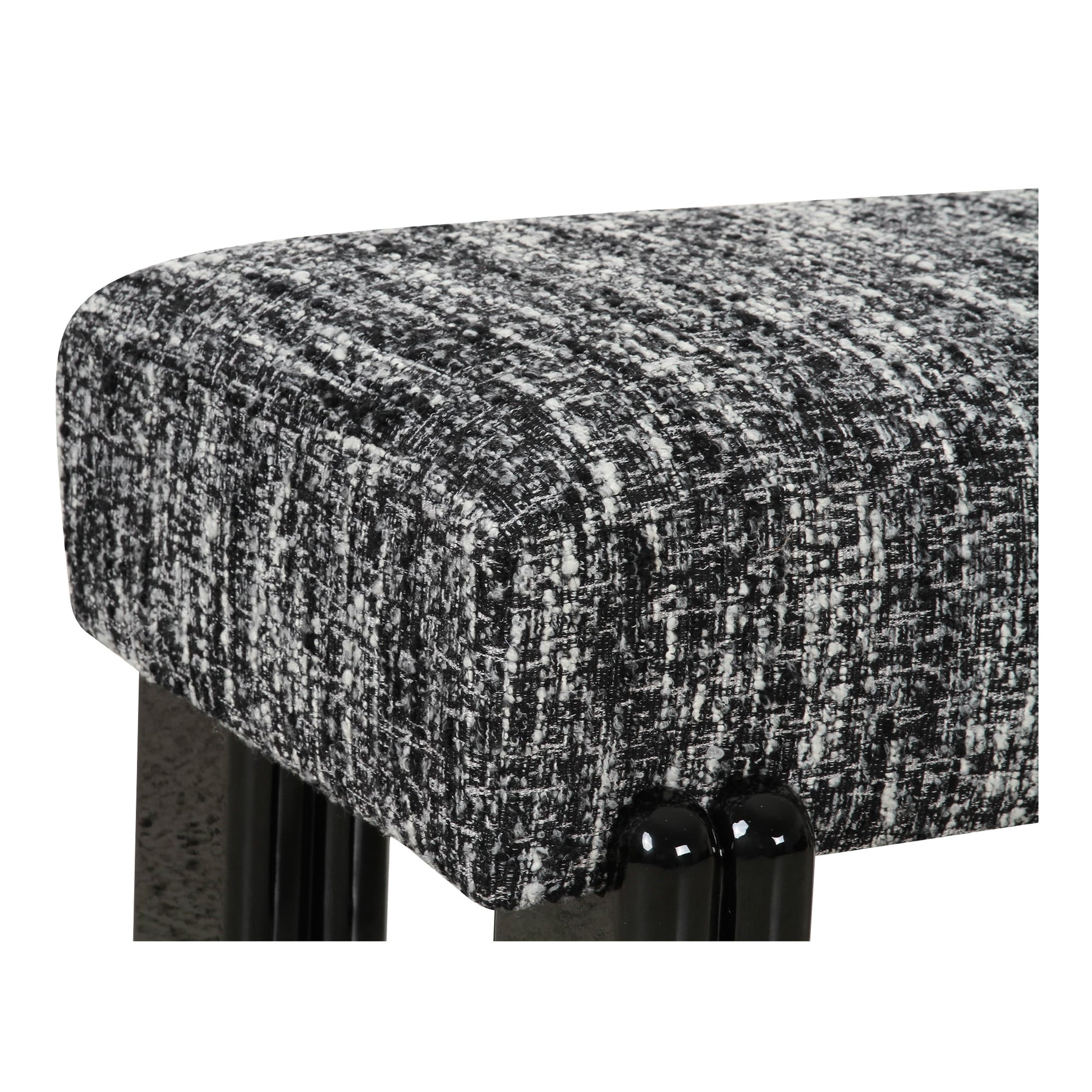 The Priya Bench brings a perfect blend of modern style and comfort to any room, available in two variations: black and beige. The bench features textured boucle yarn upholstery composed of 90% polyester and 10% acrylic, offering a soft and durable finish. The black version showcases a sleek design, while the beige version offers a neutral tone that complements various decor styles. Both benches are equipped with high-density foam seats, ensuring comfort whether you're putting on shoes or simply relaxing. The standout feature of the Priya Bench is its high-gloss iron legs, which are designed with a unique double-leg column detail, adding both sturdiness and modern flair to the overall look.