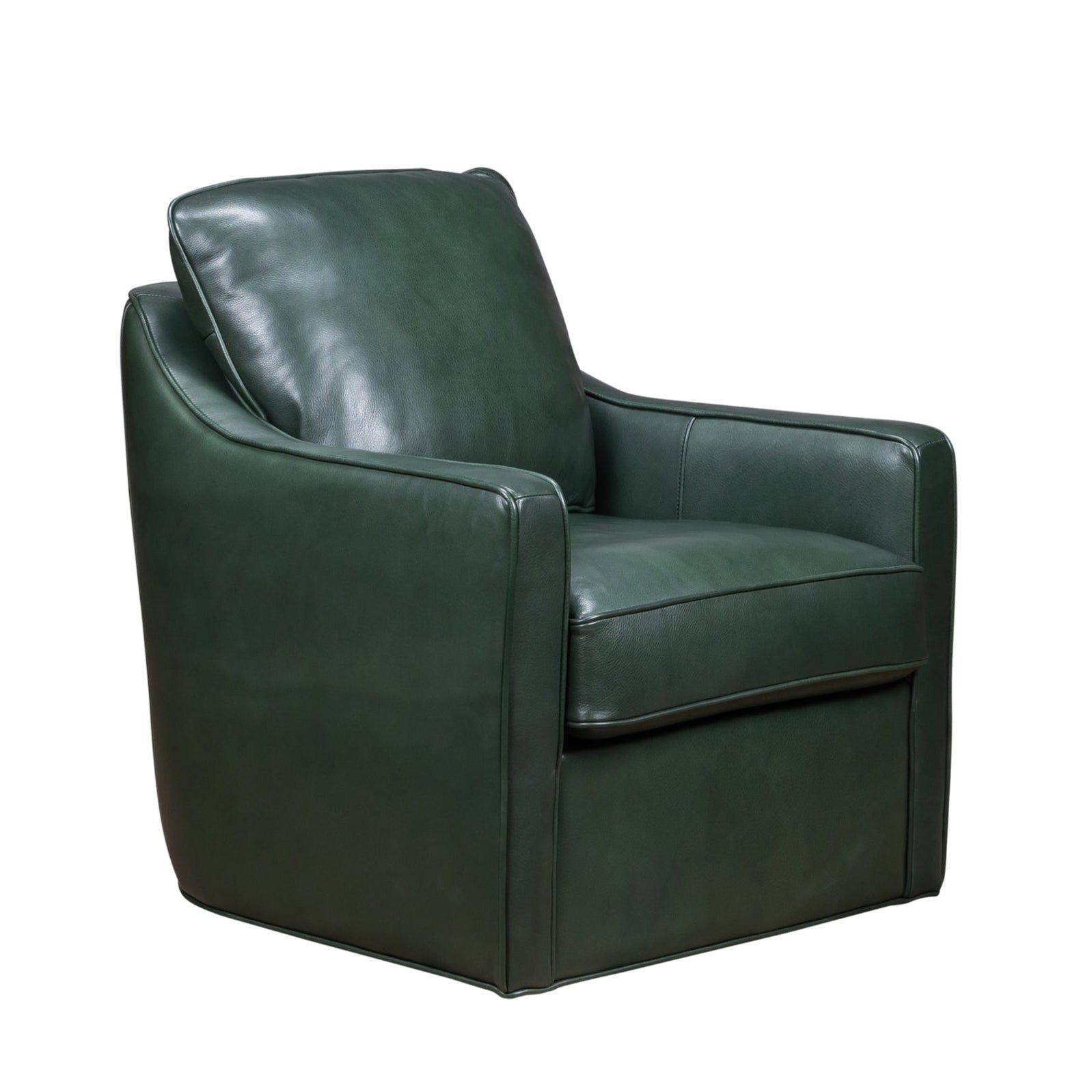The Pure Swivel Chair offers a perfect blend of style, comfort, and functionality in two distinct finishes: Athena Evergreen and Saddlebag Ale. The Athena Evergreen version features a rich green hue and a smooth leather finish, making it a standout piece in any home or office. Meanwhile, the Saddlebag Ale finish brings a warm brown tone, adding a touch of sophistication to any room. Both versions share the same high-quality materials, including leather, foam, and wood, ensuring long-lasting durability. The modern boxy shape and plush foam with fiber overlay seat construction provide maximum comfort for hours of use, whether working, reading, or relaxing.