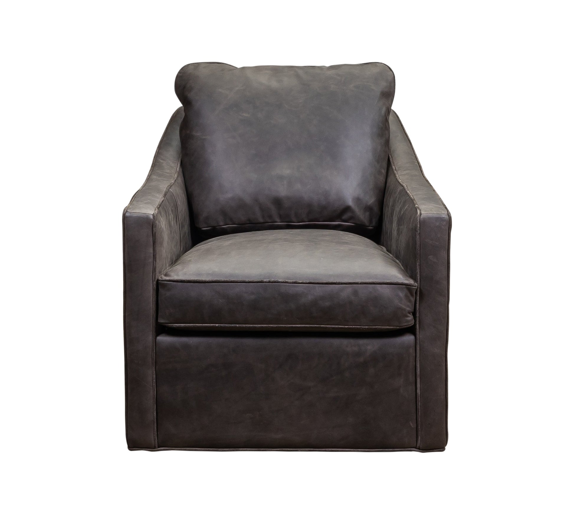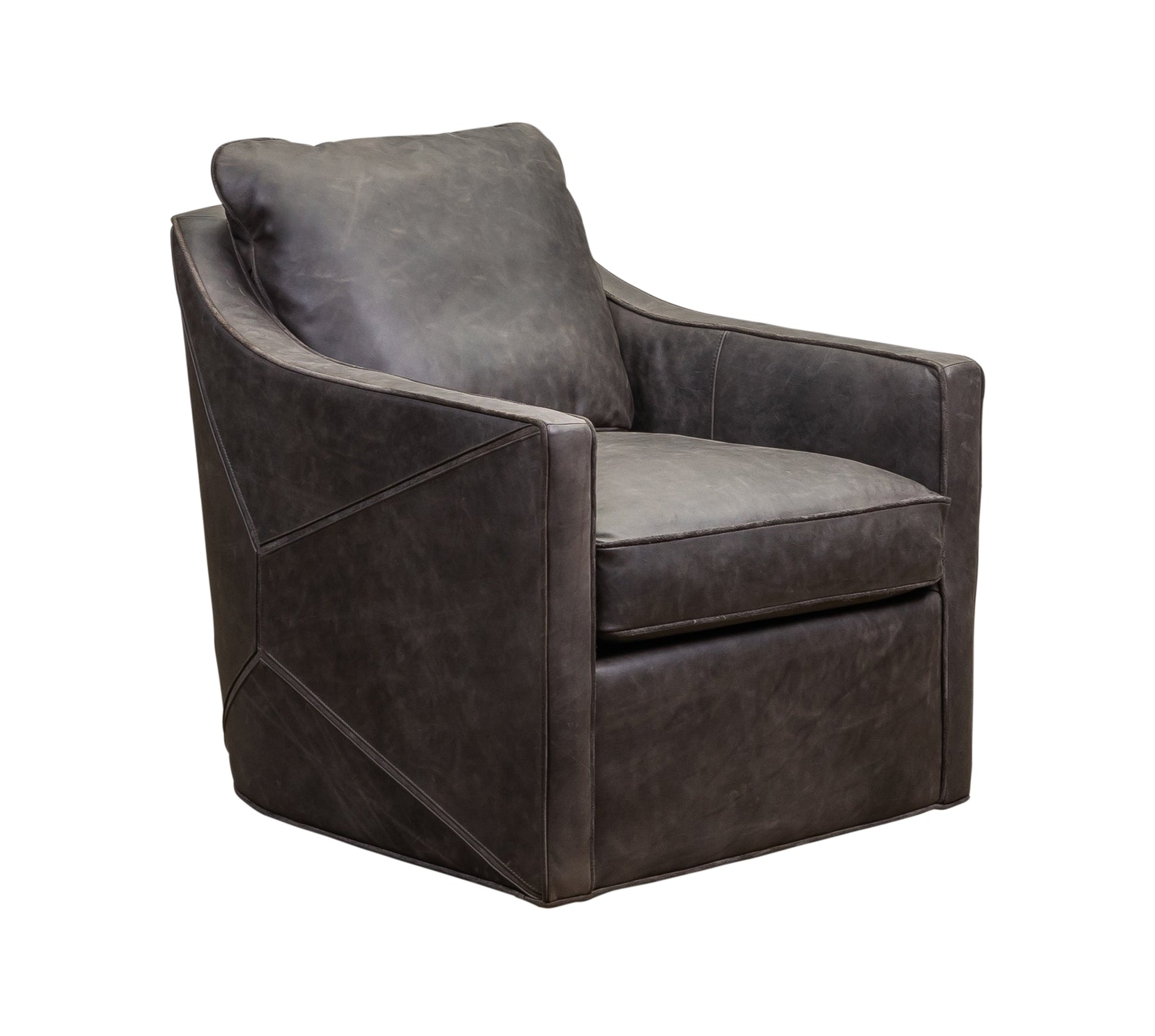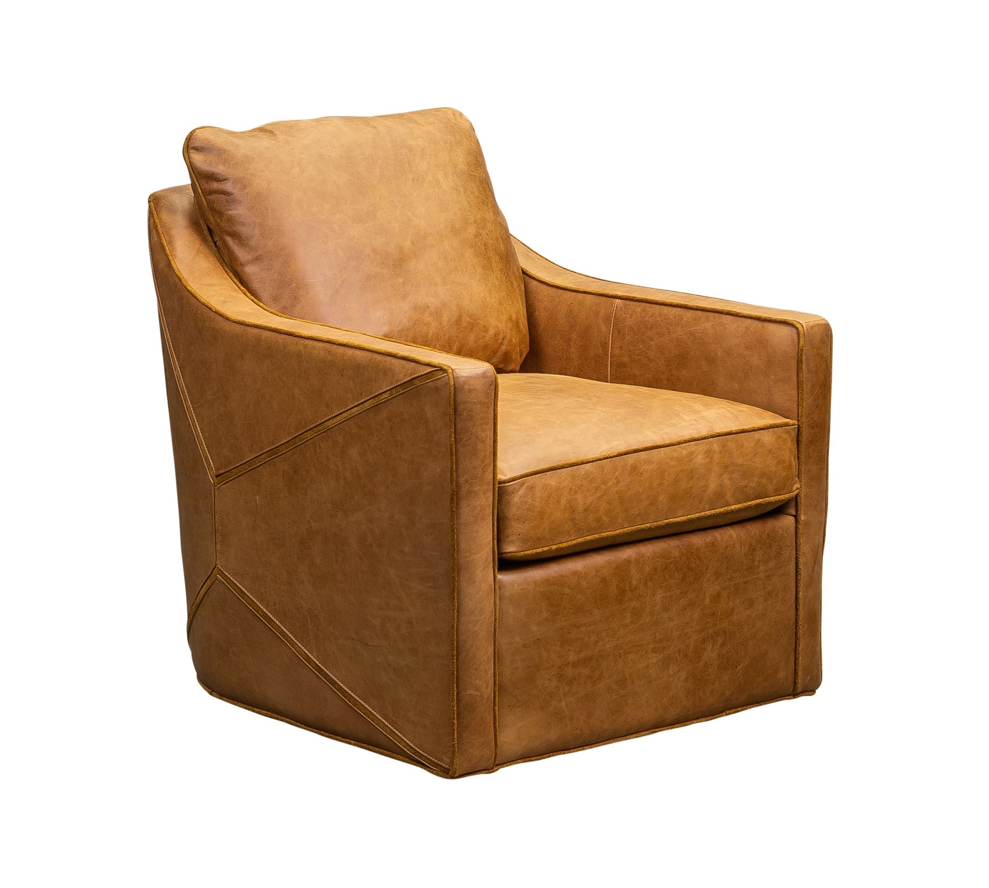 The Puzzle Swivel Chair is an ideal addition to any home, offering both style and comfort in three distinct finishes: Collins Celadon, Saddlebag Ale, and Saddlebag Lead. The chair’s unique stitching details and compact design make it versatile enough to blend with both traditional and modern decor. Made from high-quality leather, foam, and wood, each variant ensures a luxurious yet durable seating experience. The Collins Celadon finish offers a fresh, light look, while the Saddlebag Ale and Lead finishes bring warmth and sophistication to any space. The foam with fiber overlay seat construction and cushioned seat provide comfort for hours of relaxation. The chair’s apartment-scale design makes it perfect for smaller spaces without compromising on style or function.