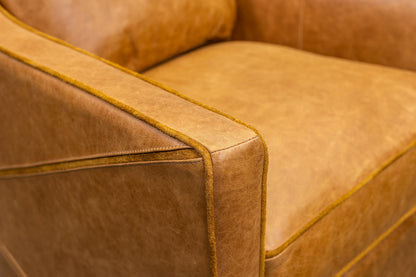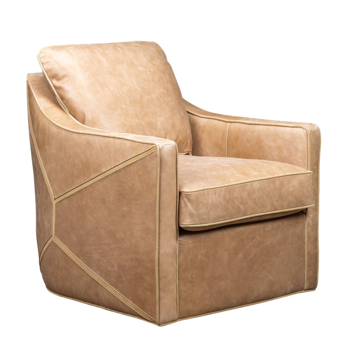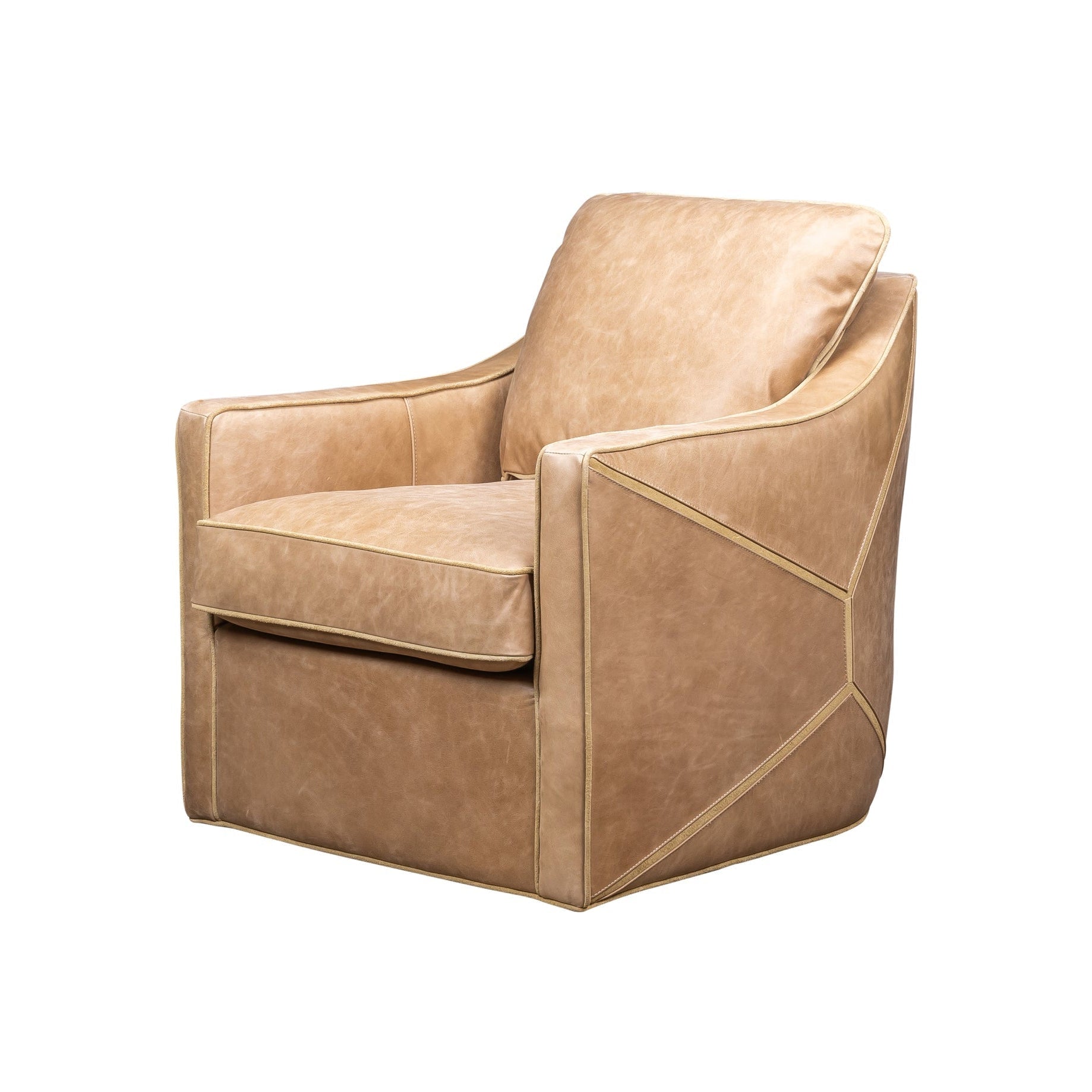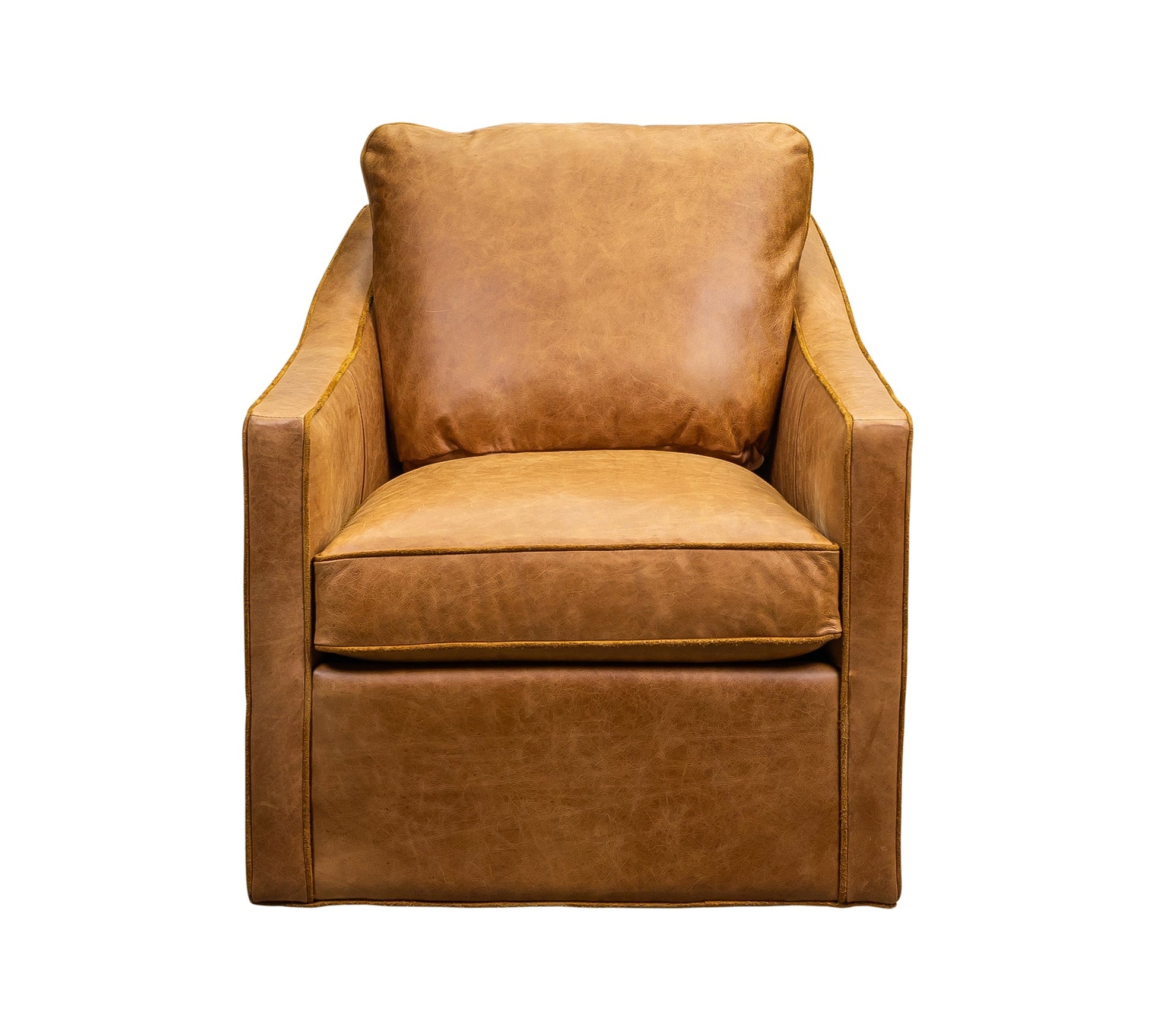 The Puzzle Swivel Chair is an ideal addition to any home, offering both style and comfort in three distinct finishes: Collins Celadon, Saddlebag Ale, and Saddlebag Lead. The chair’s unique stitching details and compact design make it versatile enough to blend with both traditional and modern decor. Made from high-quality leather, foam, and wood, each variant ensures a luxurious yet durable seating experience. The Collins Celadon finish offers a fresh, light look, while the Saddlebag Ale and Lead finishes bring warmth and sophistication to any space. The foam with fiber overlay seat construction and cushioned seat provide comfort for hours of relaxation. The chair’s apartment-scale design makes it perfect for smaller spaces without compromising on style or function.