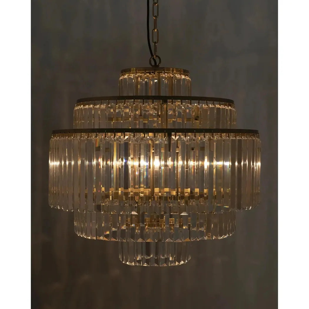 Quintus Metal and Glass Chandelier With Brass Finish Features: