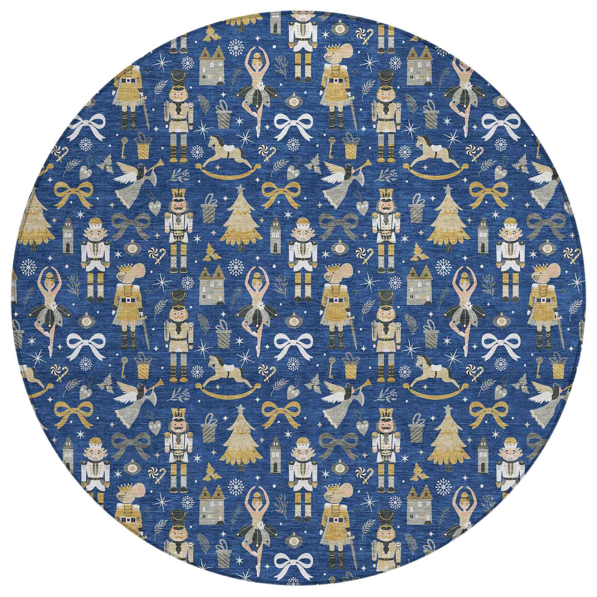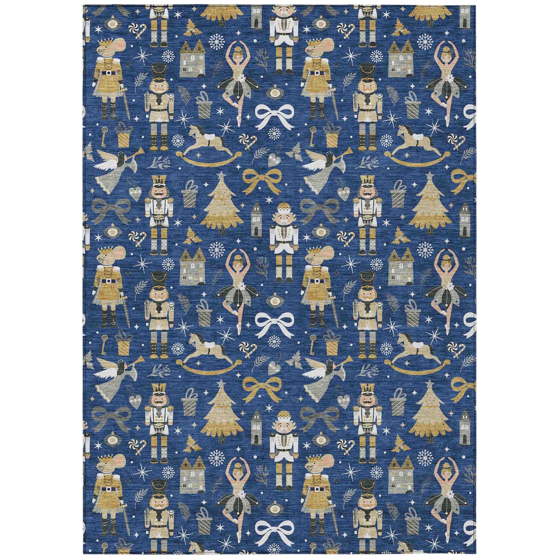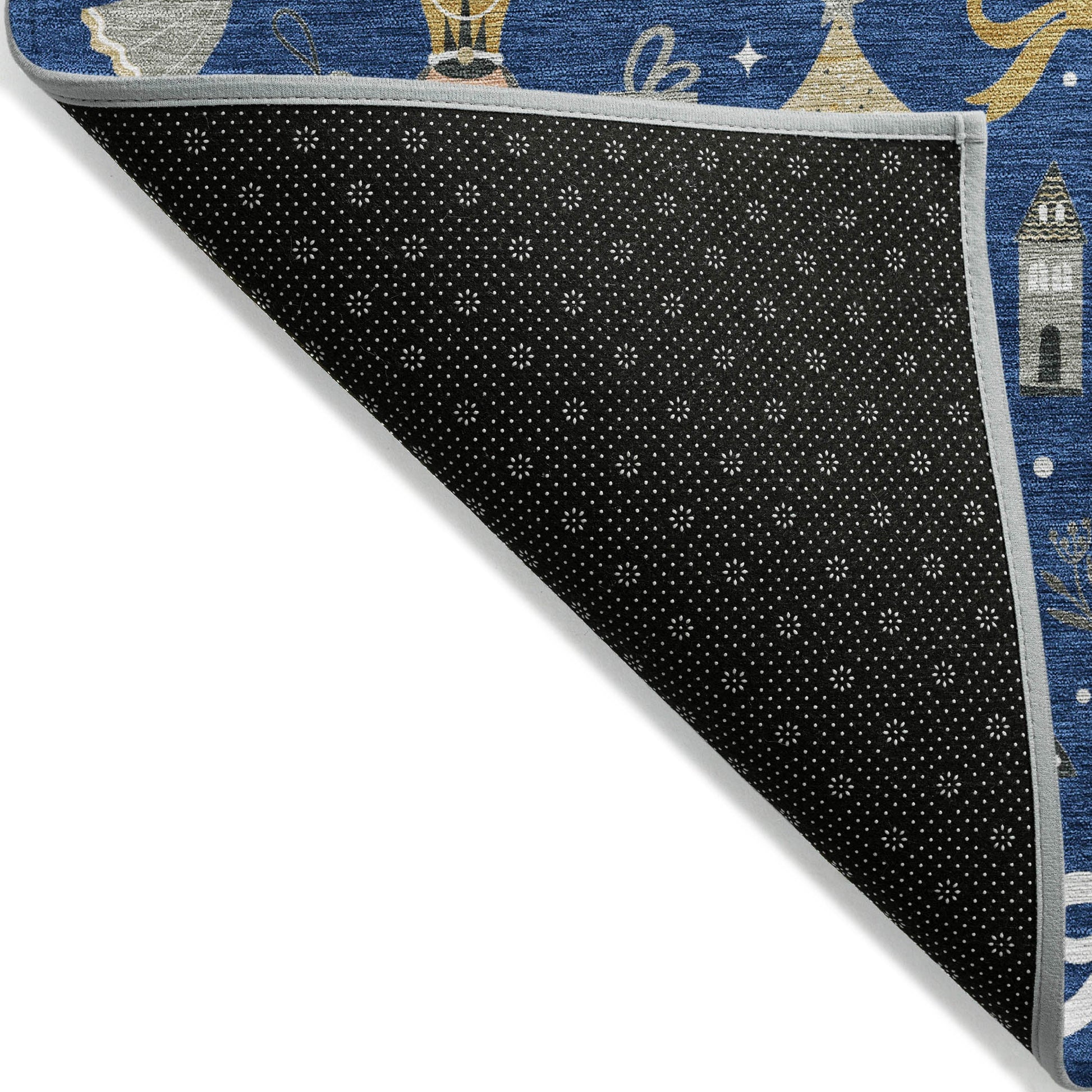 The Raeara Blue Washable Indoor-Outdoor Rug offers a delightful touch to any space with its charming holiday motifs. Featuring nutcrackers, trees, bows, rocking horses, presents, and whimsical mice and angels, this rug brings festive cheer to your home. Its transitional style ensures that the Christmas pattern blends well with both traditional and modern decor. Crafted for indoor and outdoor use, its UV stabilization helps maintain its color and vibrancy against the elements. The ultra-thin design makes it easy to maintain and handle, making it a practical choice for busy households.