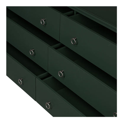 The Reagan 6 Drawer Dresser is a stunning blend of classic and modern design, available in both black and deep green finishes. Crafted from MDF and Acacia, this dresser offers durability and elegance, making it a versatile addition to any bedroom. The sleek finish of the dresser enhances its sophisticated look, while the black iron legs and silver knock-style handles add a touch of refinement. Featuring six spacious drawers, this dresser provides ample storage for clothes, linens, and accessories, making it a perfect fit for various room styles. Designed with both style and functionality in mind, the Reagan 6 Drawer Dresser includes soft-closing metal side-mounted glides for smooth operation.