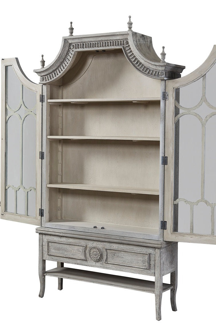 Take a risk, remove the finials for a more simplified look and make a statement with this stunning piece. Don't miss the opportunity to add a touch of femininity and elevate your interior design with our Reims Cathedral Arched Cabinet.