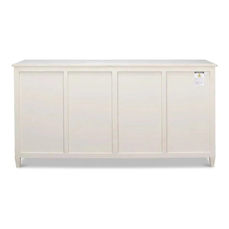 Expertly crafted from solid Reclaimed Pine, this sideboard adds a touch of elegance and sophistication to any dining room, kitchen, or living space. Thanks to its well-loved aesthetic and artisanal quality, this 77-inch wide sideboard makes a refined traditional statement. With two removable interior shelves and raised panel doors accented by crown molding and antique iron hardware, it's a practical and stylish way to store your dining and bar essentials. And with a solid pine construction, it's built to last for years to come. Choose the Roanne Sideboard for effortless style and timeless storage.