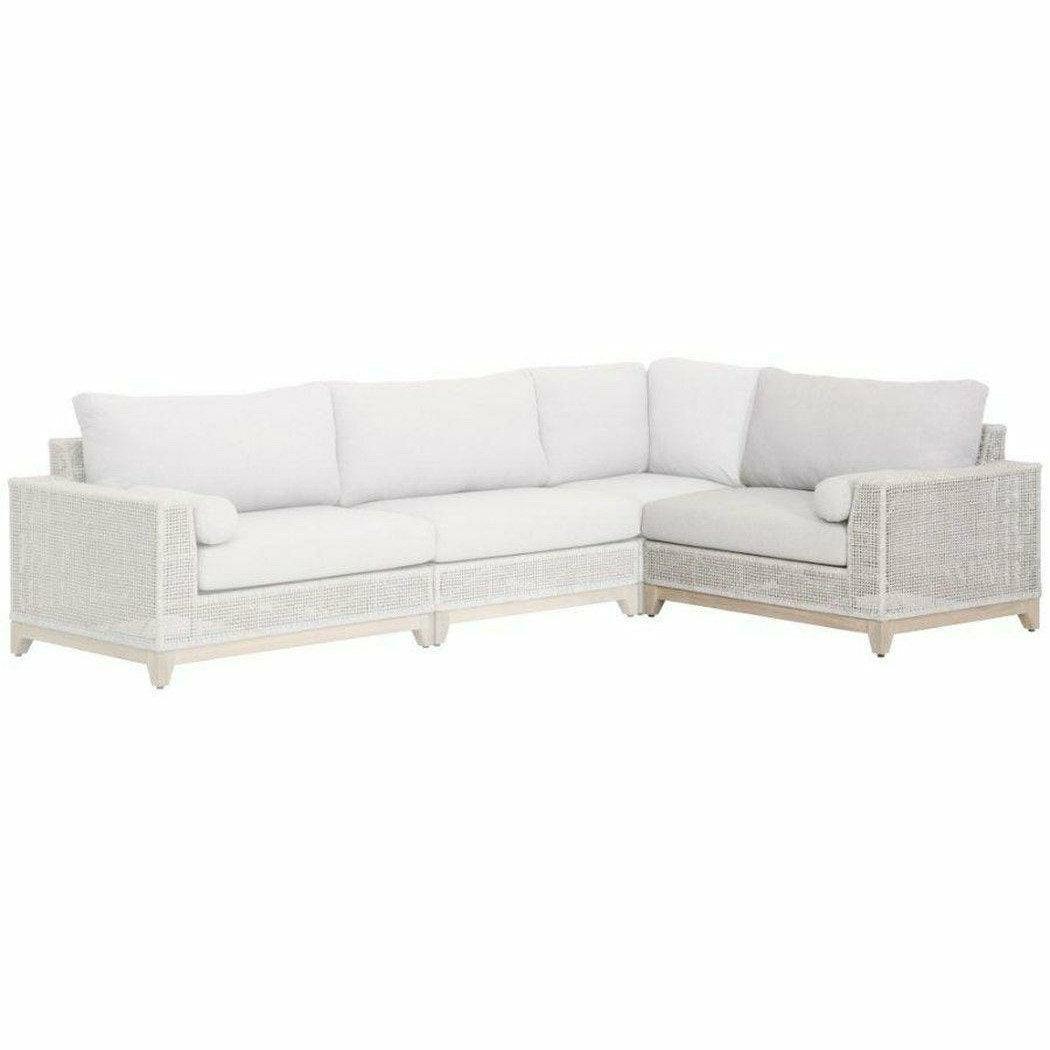 Tropez Outdoor Modular Right Facing 1-Arm Sofa Taupe and White Flat Rope, Pumice, Grey Teak Features: